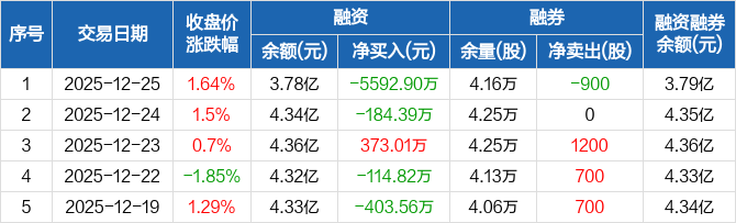 爱柯迪:融资净偿还5592.9万元,融资余额3.78亿元(12-25)