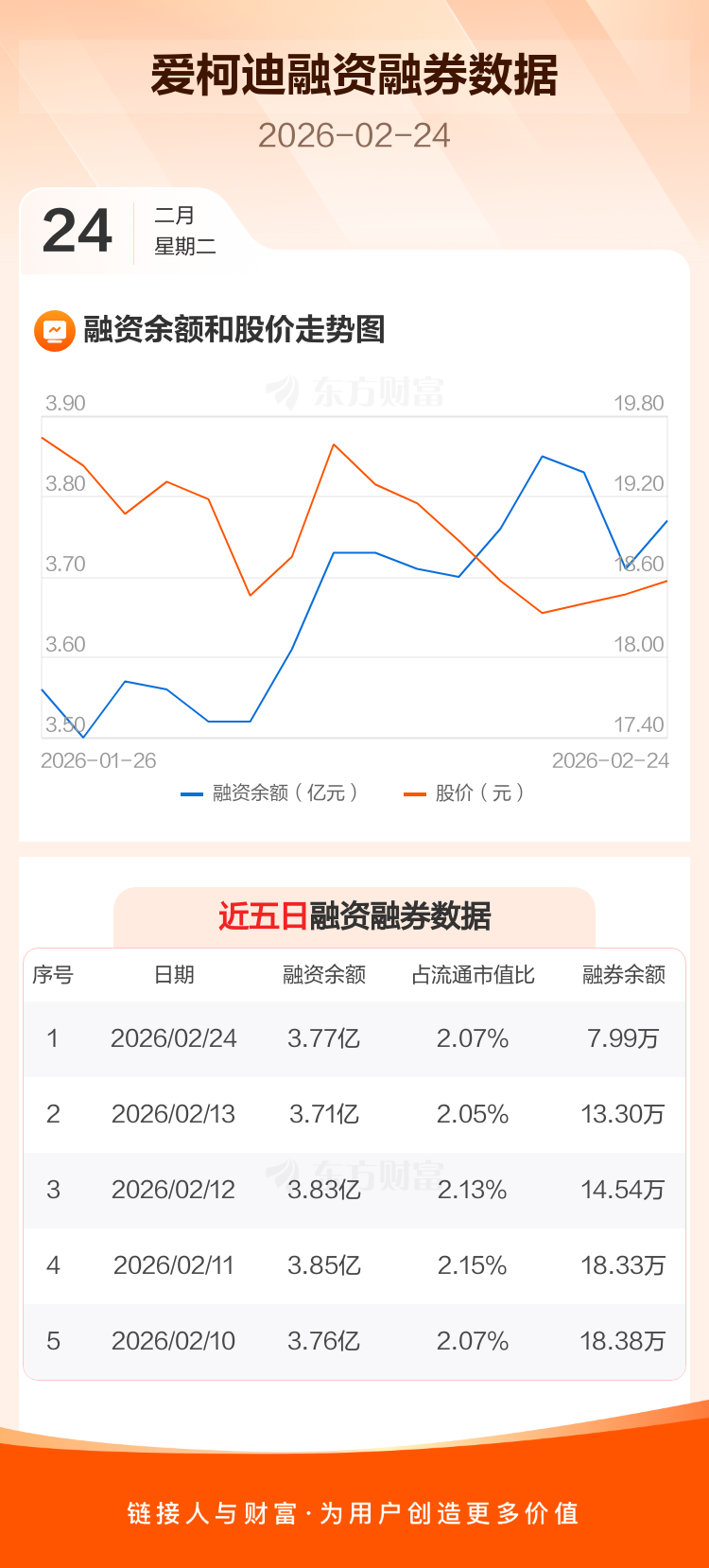 交易所最新数据显示,爱柯迪于2026年2月24日获融资买入2105.62万元,融资偿还1529.22万元,当日融资净买入576.41万元。目前,该股融资余额3.77亿,占流通市值比例为2.07%。
