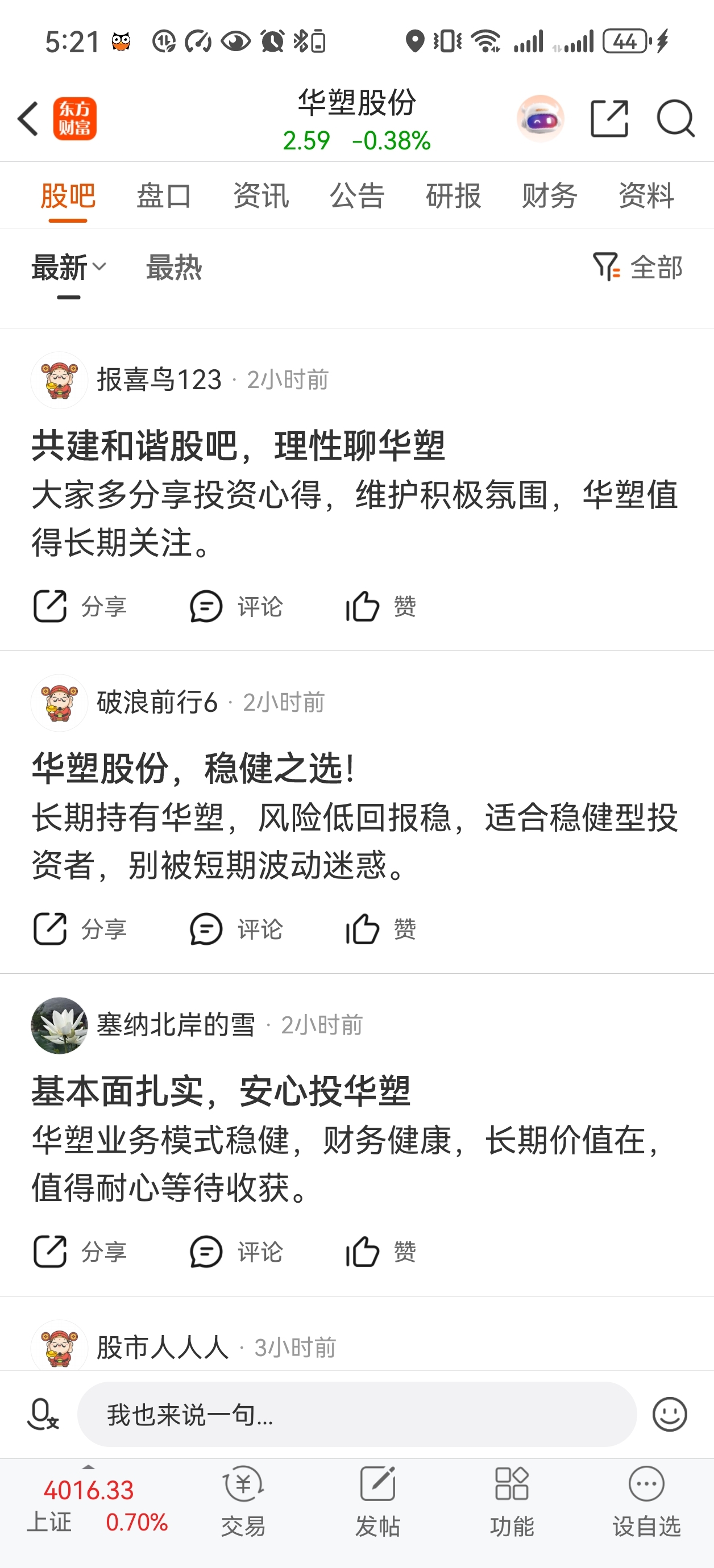 温馨提示: 1.根据《证券法》规定,禁止编造、传播虚假信息或者误导性信息,扰乱证券市场;2.用户在本社区发表的所有资料、言论等仅代表个人观点,与本网站立场无关,不对您构成任何投资建议。用户应基于自己的独立判断,自行决定证券投资并承担相应风险。《东方财富社区管理规定》