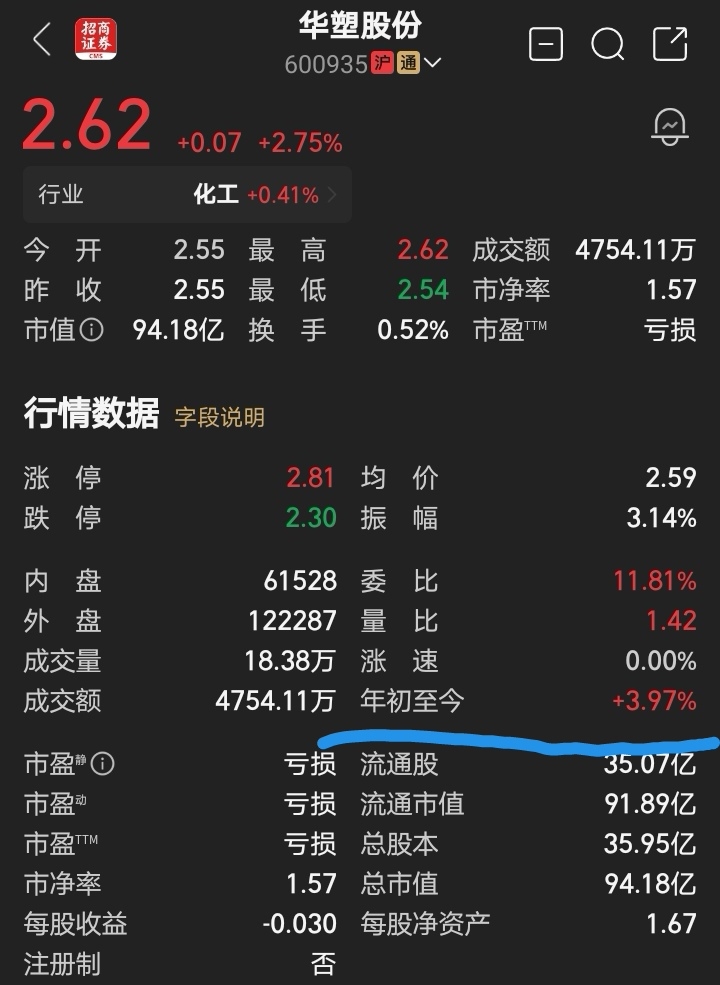 $华塑股份(SH600935)$ 年初到年末,到如今涨了三个多点了。