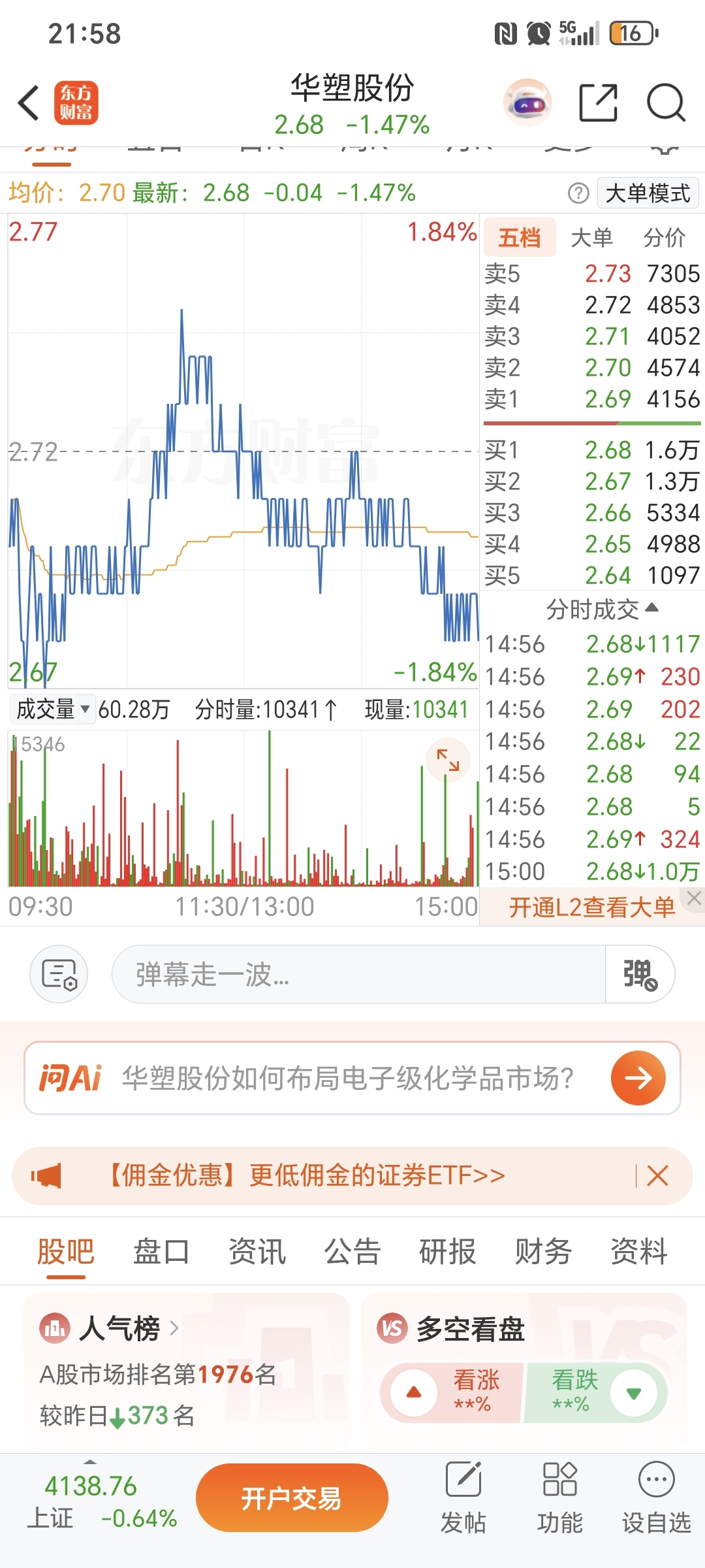 $华塑股份(SH600935)$ 今天哥就不过多讲了。。。直接上图。。。!!!这种量。。。这种活跃度。。。在哥没来之前。。。你们想都不敢想。。。!!!