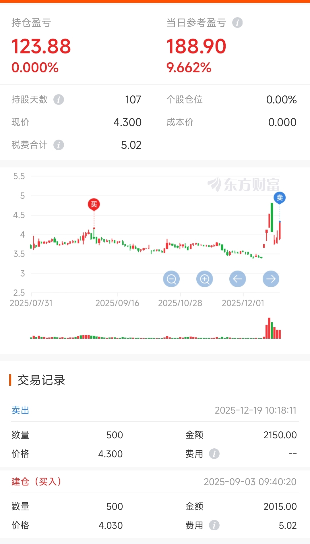 买了107天,一直亏本,今天直接看到挂了涨停,谁知道居然成了,落袋为安
