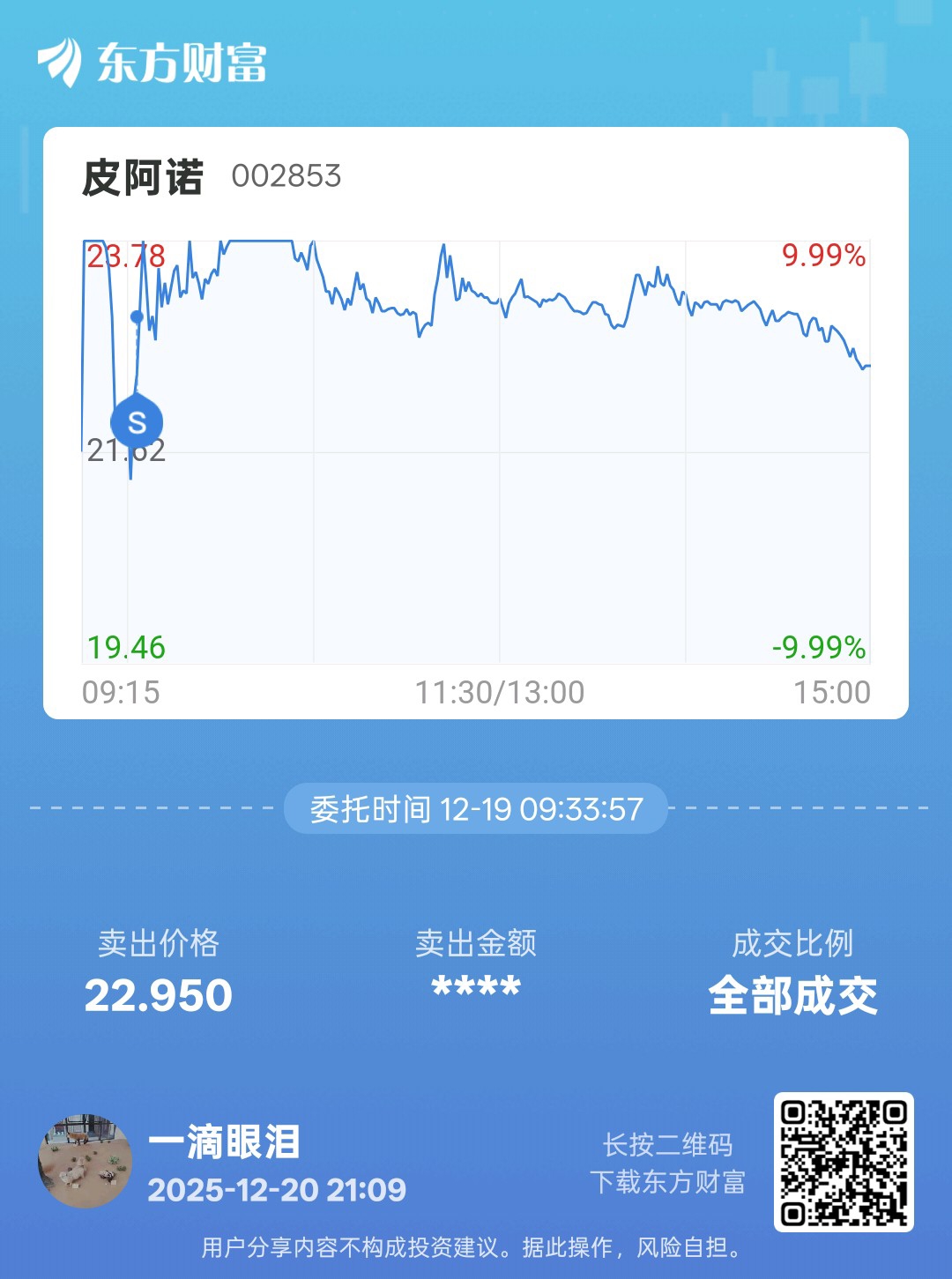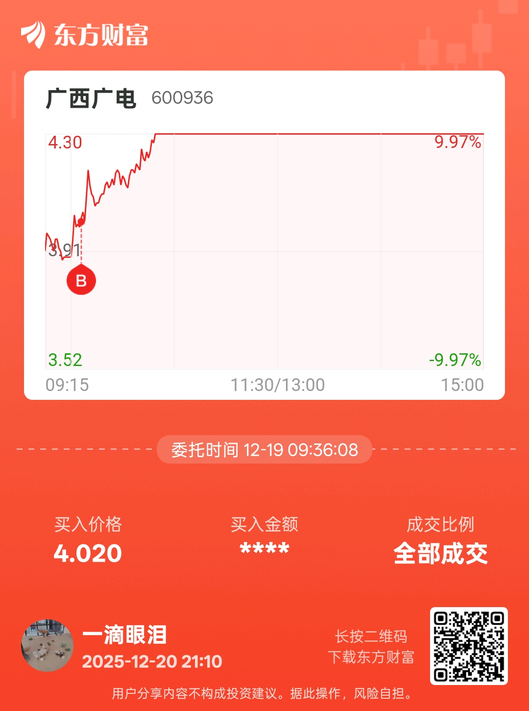 温馨提示: 1.根据《证券法》规定,禁止编造、传播虚假信息或者误导性信息,扰乱证券市场;2.用户在本社区发表的所有资料、言论等仅代表个人观点,与本网站立场无关,不对您构成任何投资建议。用户应基于自己的独立判断,自行决定证券投资并承担相应风险。《东方财富社区管理规定》