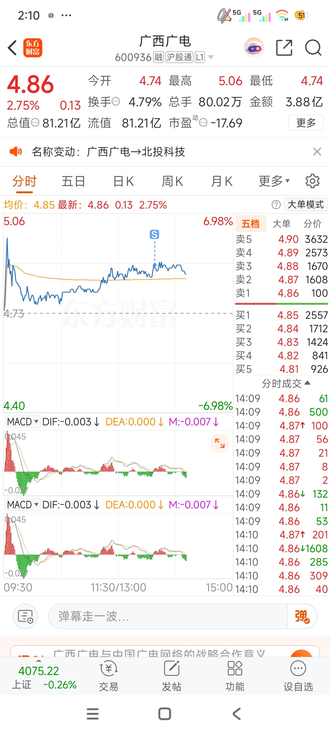 $广西广电(SH600936)$ 4.71建半仓看看。