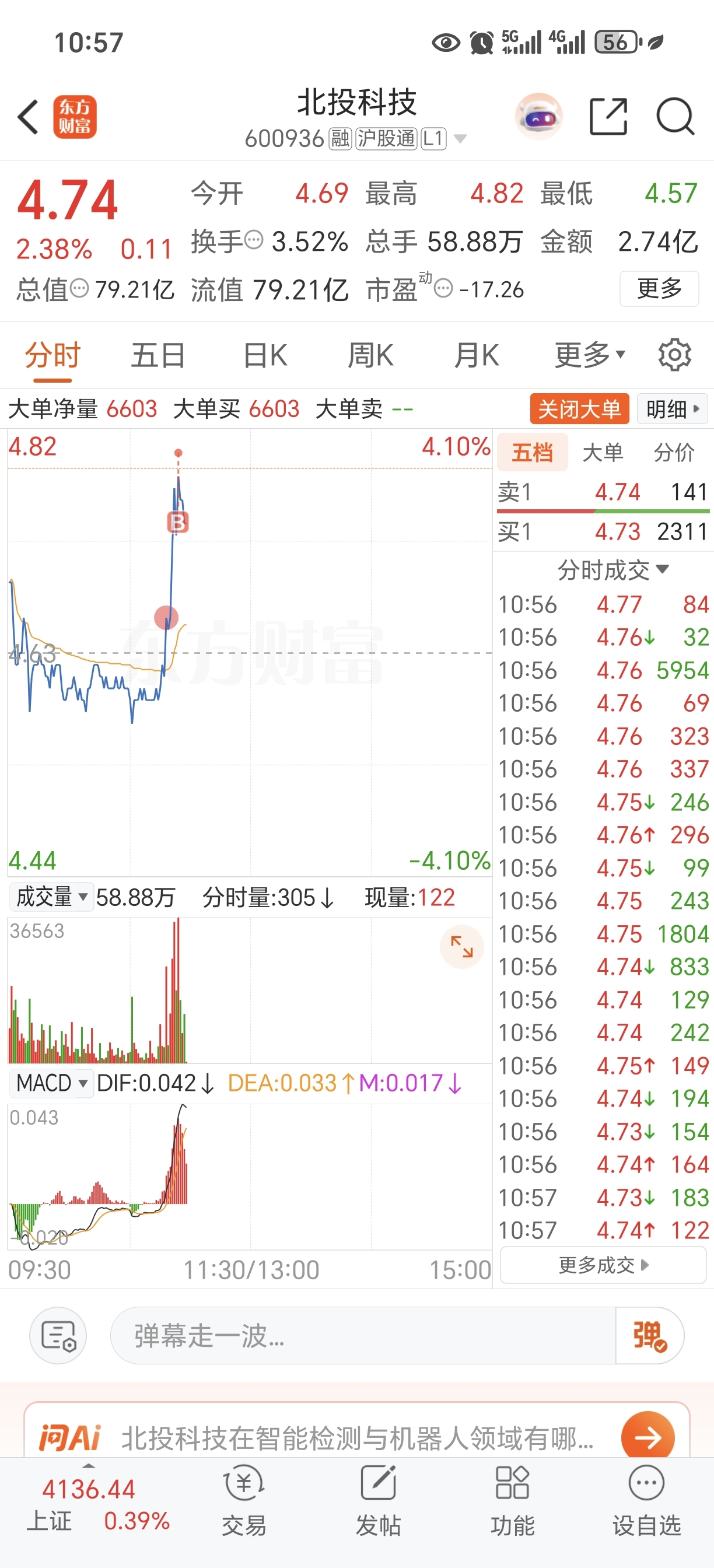 $北投科技(SH600936)$ 精准按住异动
