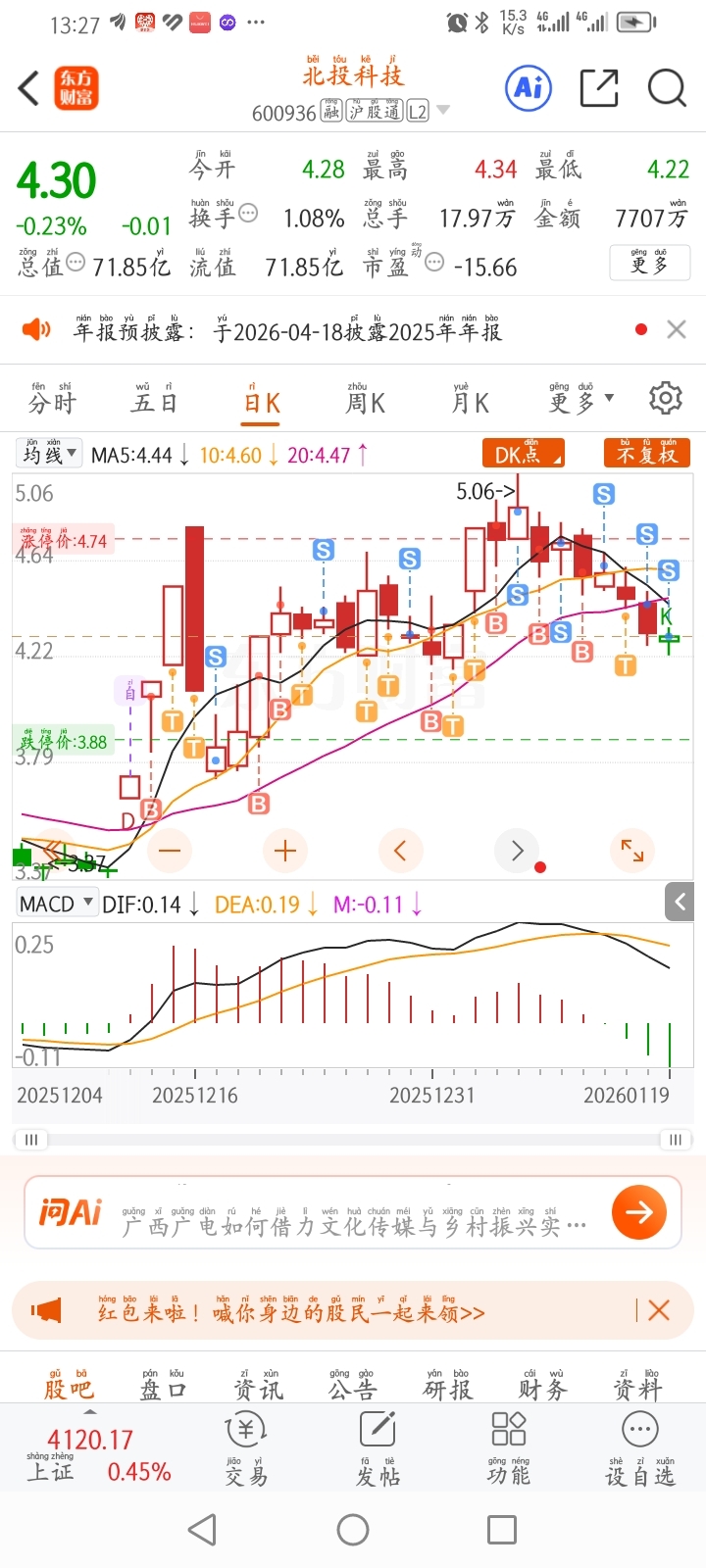 $北投科技(SH600936)$ 还是得到3.3吗?
