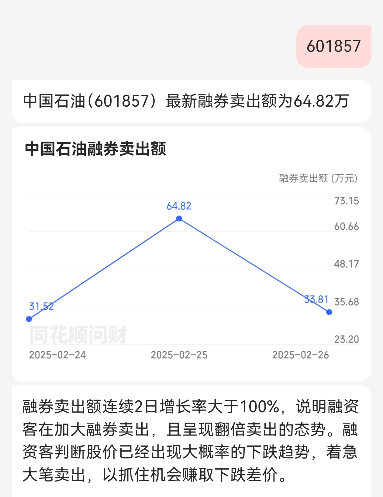 隔夜布伦特原油和美原油期货继续下跌。中国石油融券加速卖出,这你懂的。
