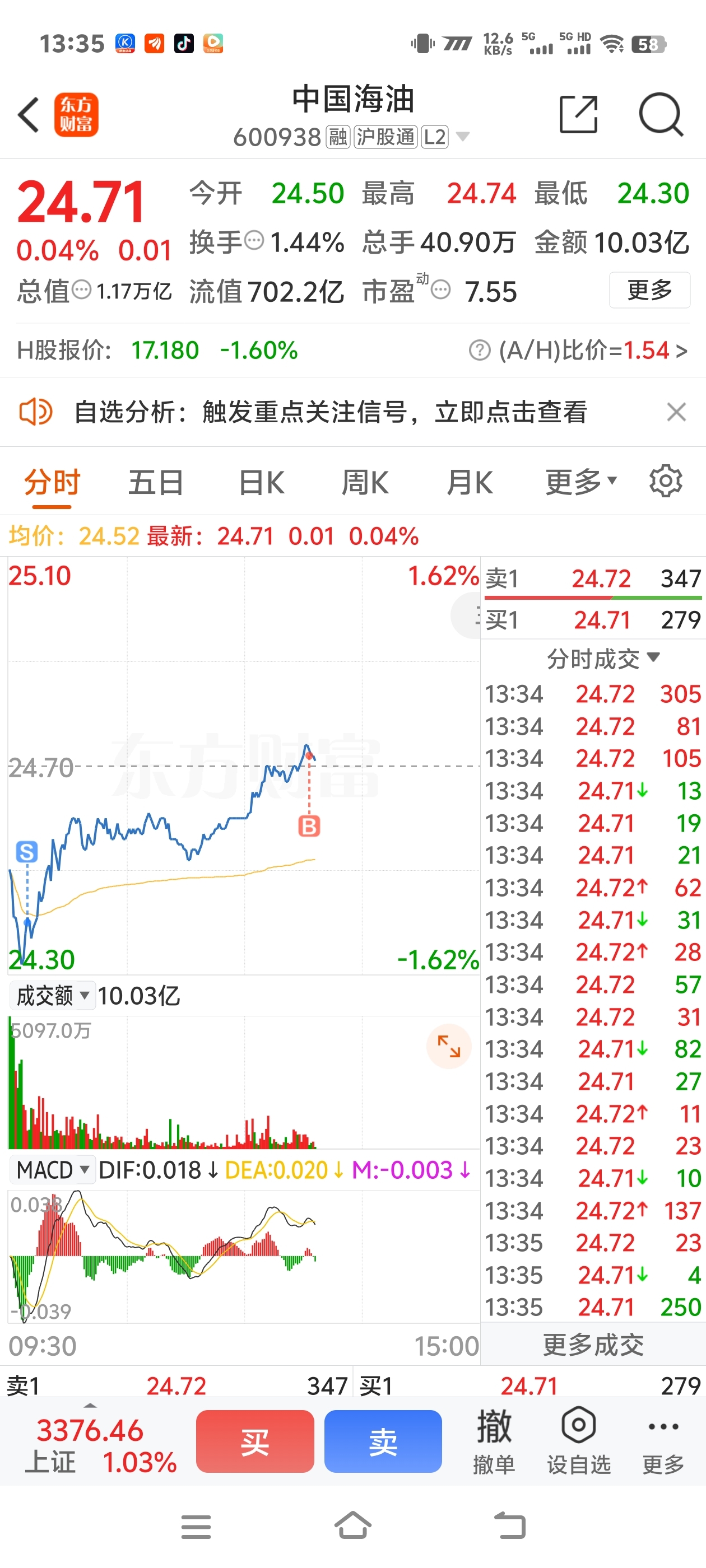 $中国海油(SH600938)$ 完全做反,唉,亏3000了