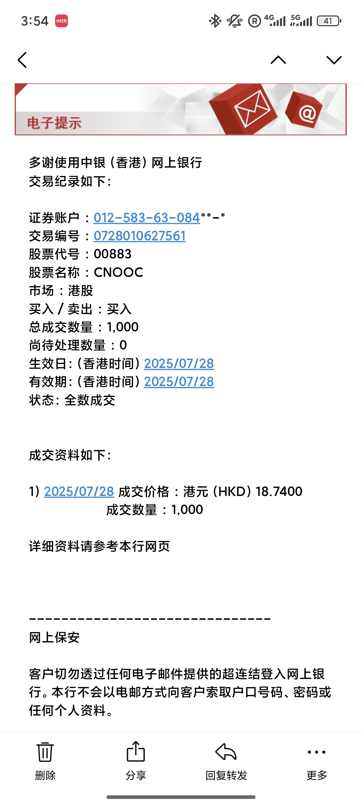 17号预约的香港中银,今天正式买入第一笔港股,后续会慢慢记录,虽然手续费很贵,但是我觉得还是比大A香