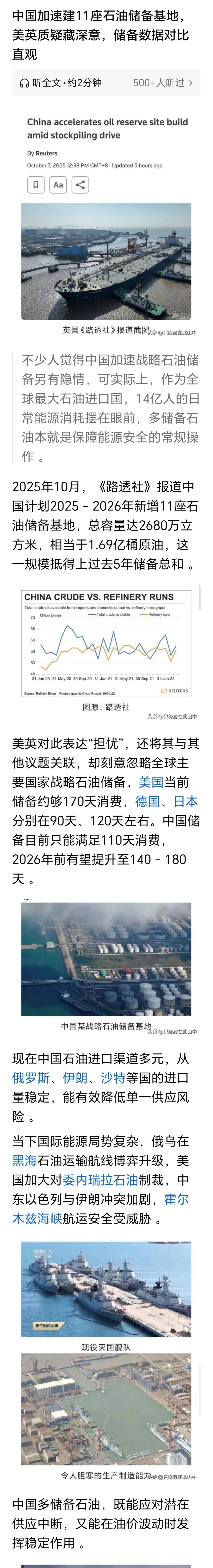 2025年10月,《路透社》报道中国计划2025-2026年新增11座石油储备基