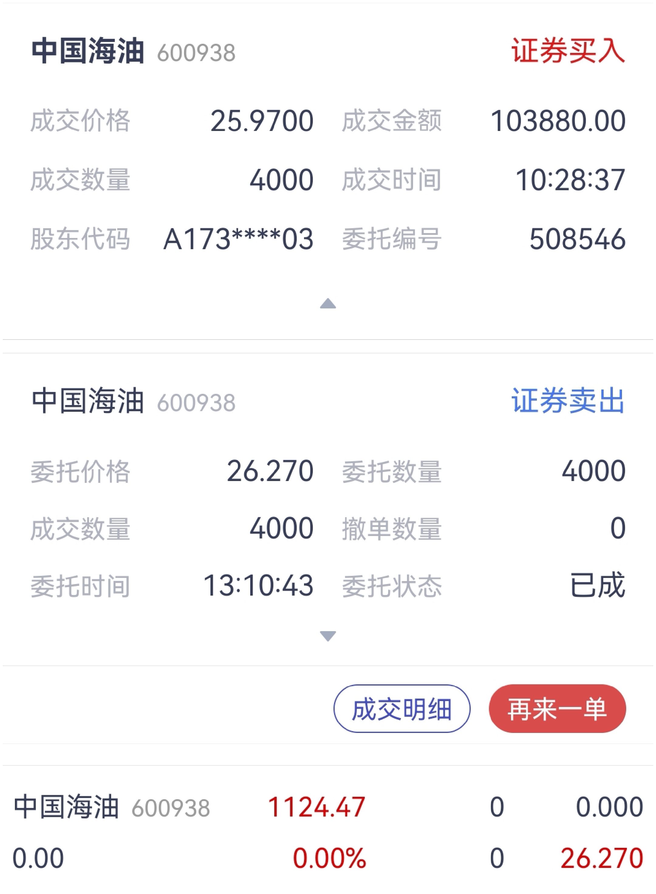 海油再给机会。前几天做个小差价,没想到海油拉出中阳线。原以为没机会低位补回来,周