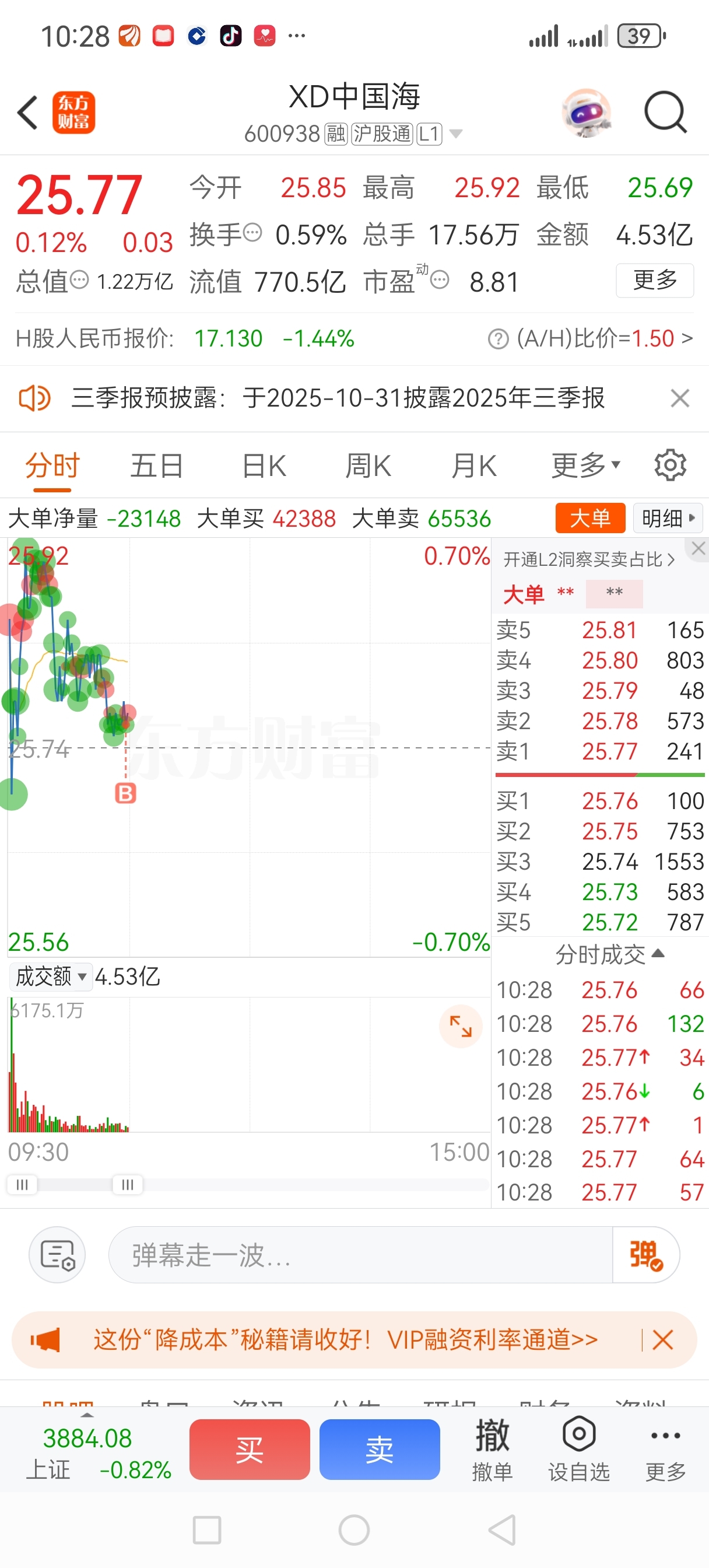 $XD中国海(SH600938)$ 分红复投了,先不管他买进去再说。