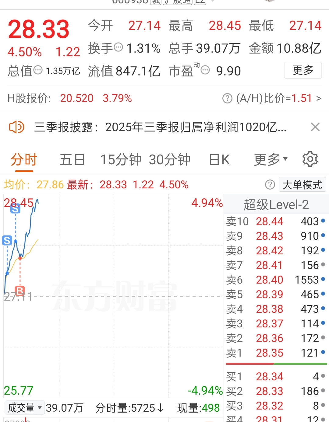 $中国海油(SH600938)$ 少赚一万