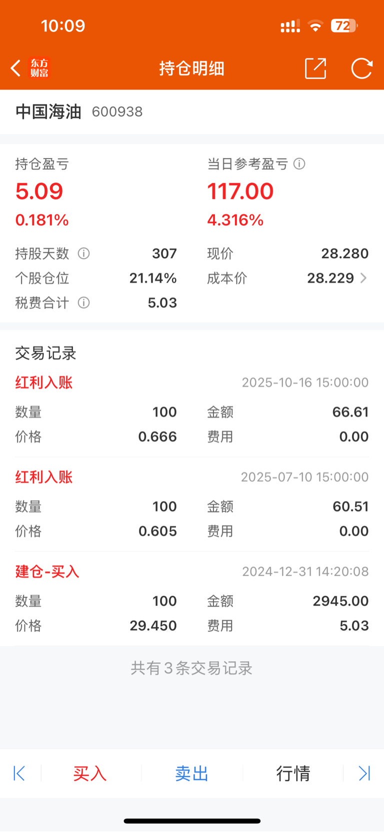$中国海油(SH600938)$ 家人们,长线投资终于回本
