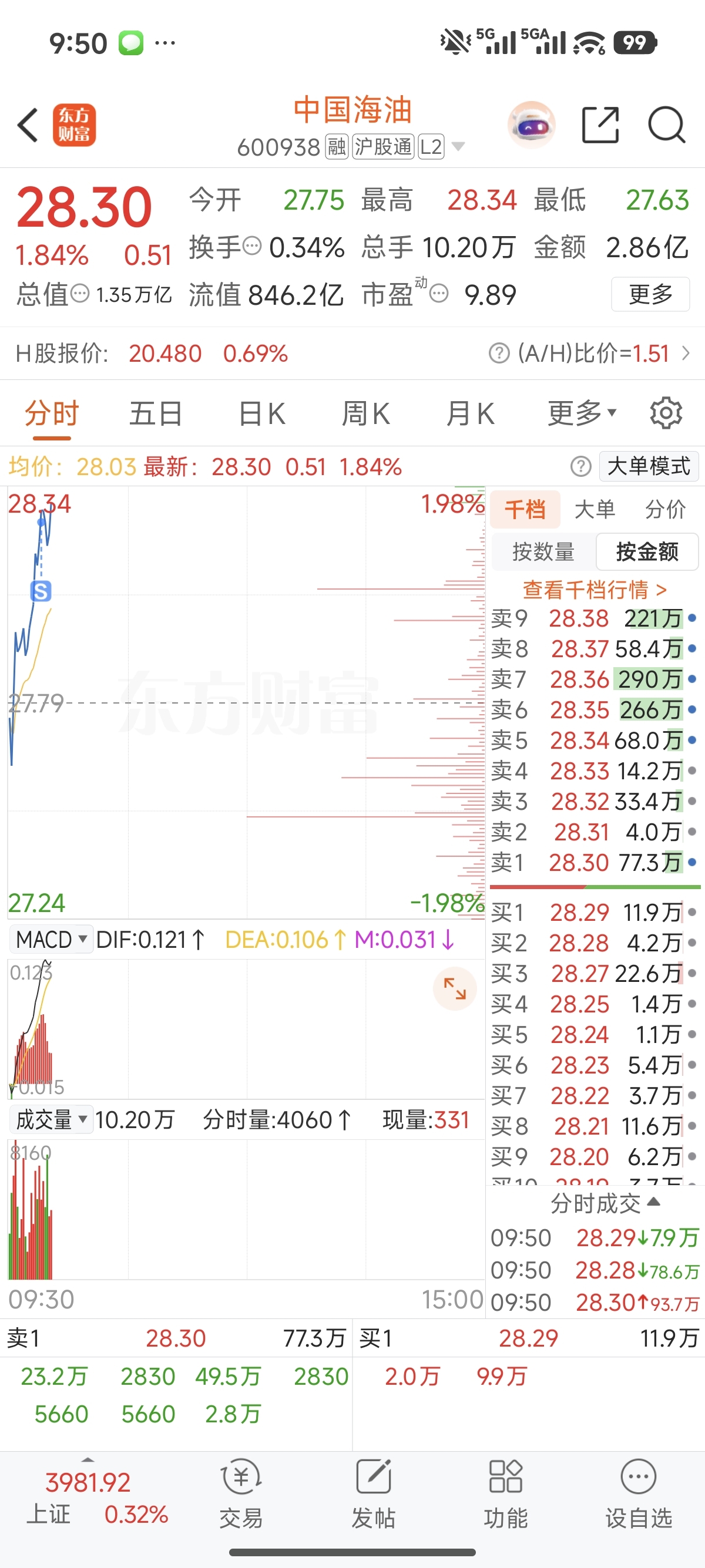 $中国海油(SH600938)$ 不敢相信,今天我会卖飞
