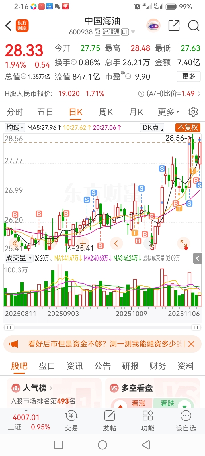$中国海油(SH600938)$ 这么多年终于挣钱了。海油给力。年底上30。