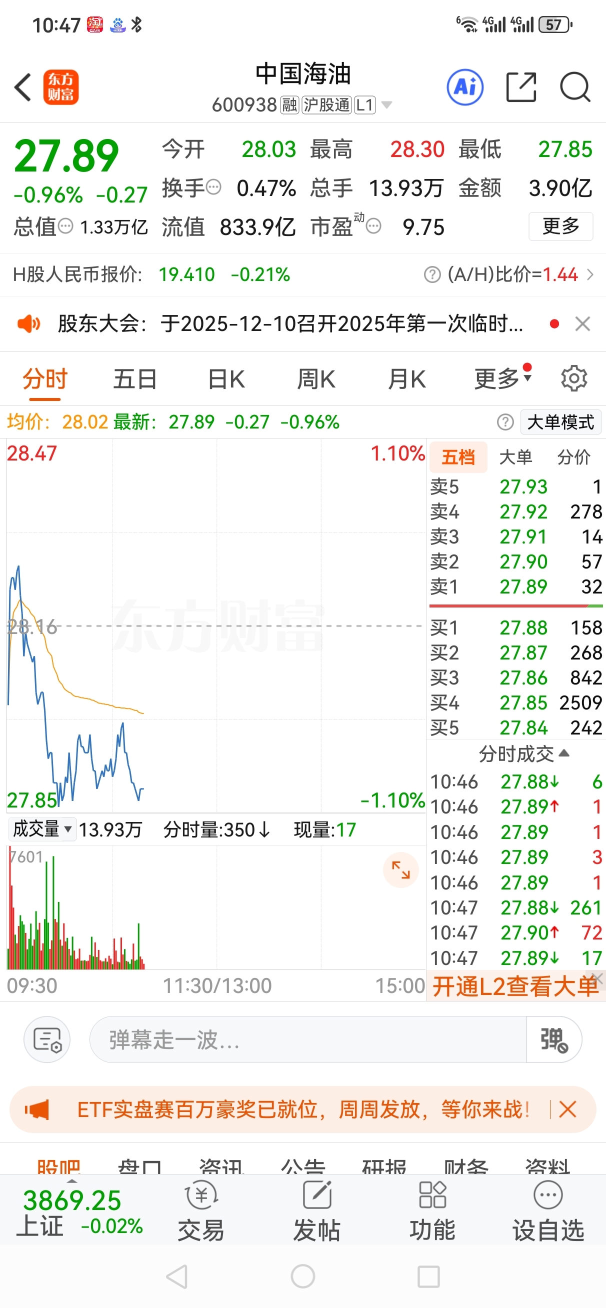 $中国海油(SH600938)$ 买卖好清淡呀,都是一手一手的买