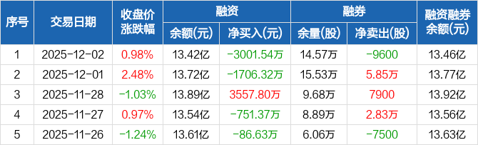 中国海油:融资余额13.42亿元,创近一年新低(12-02)