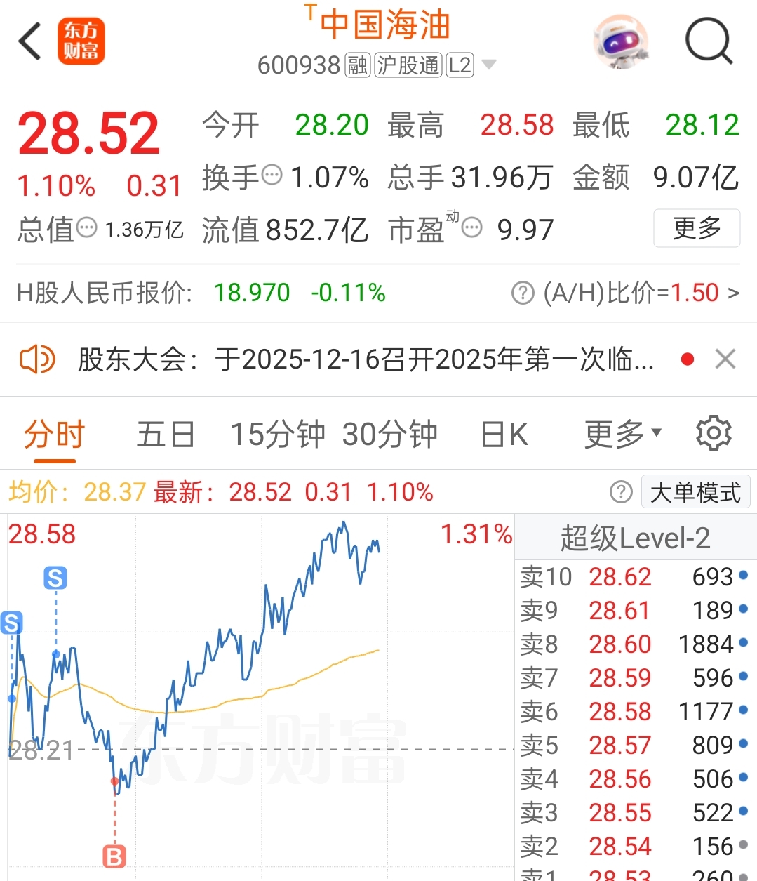 $中国海油(SH600938)$ 下来吧,还有一笔没接回来呢