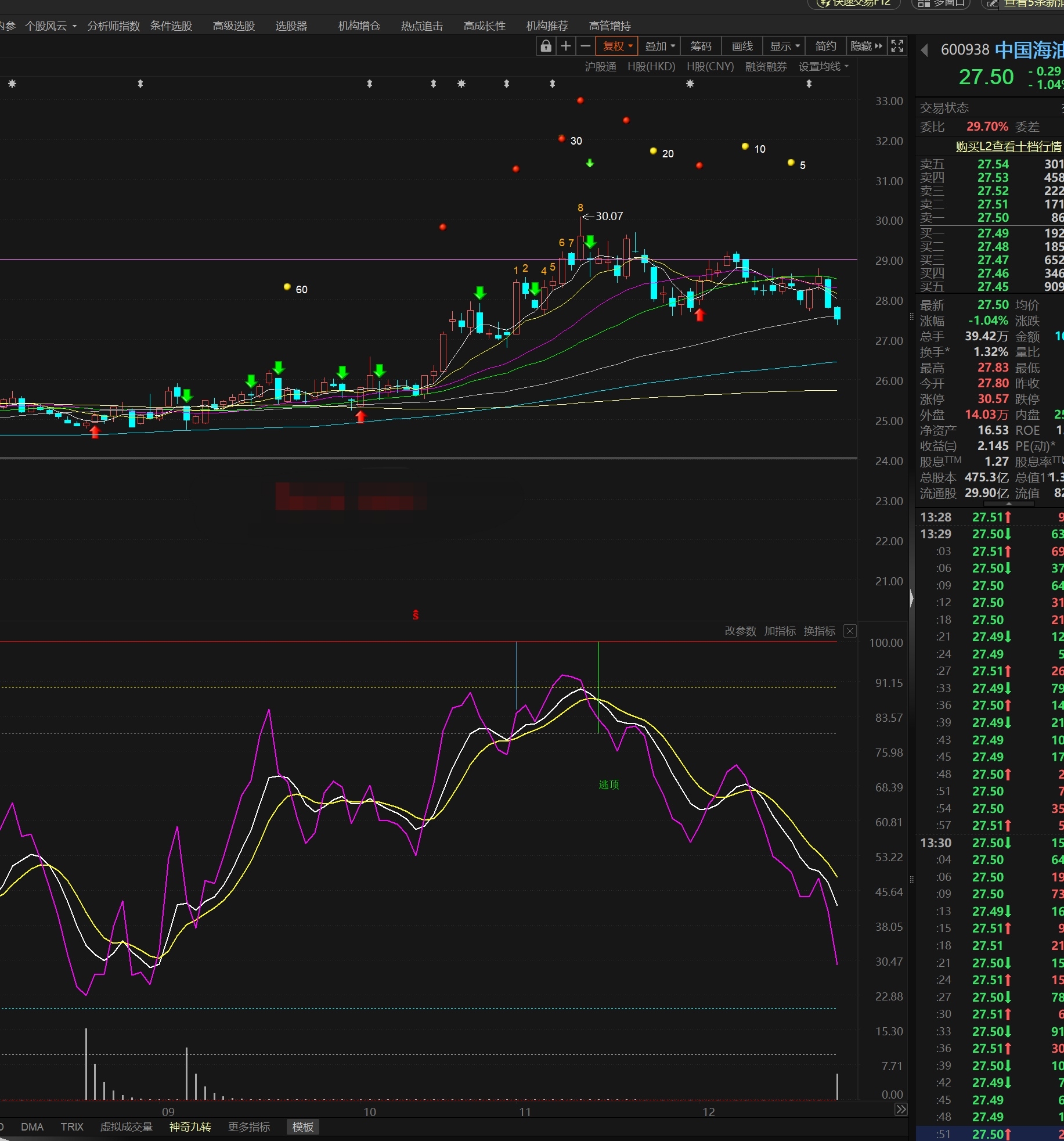 进入绿色线下面才进入超卖区,再往下,白色线下面区域是底部区域。这股目前非常适合做