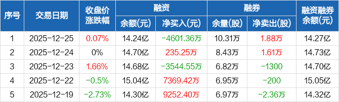 中国海油:融资净偿还4601.36万元,融资余额14.24亿元(12-25)