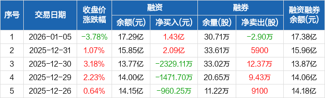 中国海油:融资净买入1.43亿元,融资余额17.29亿元(01-05)