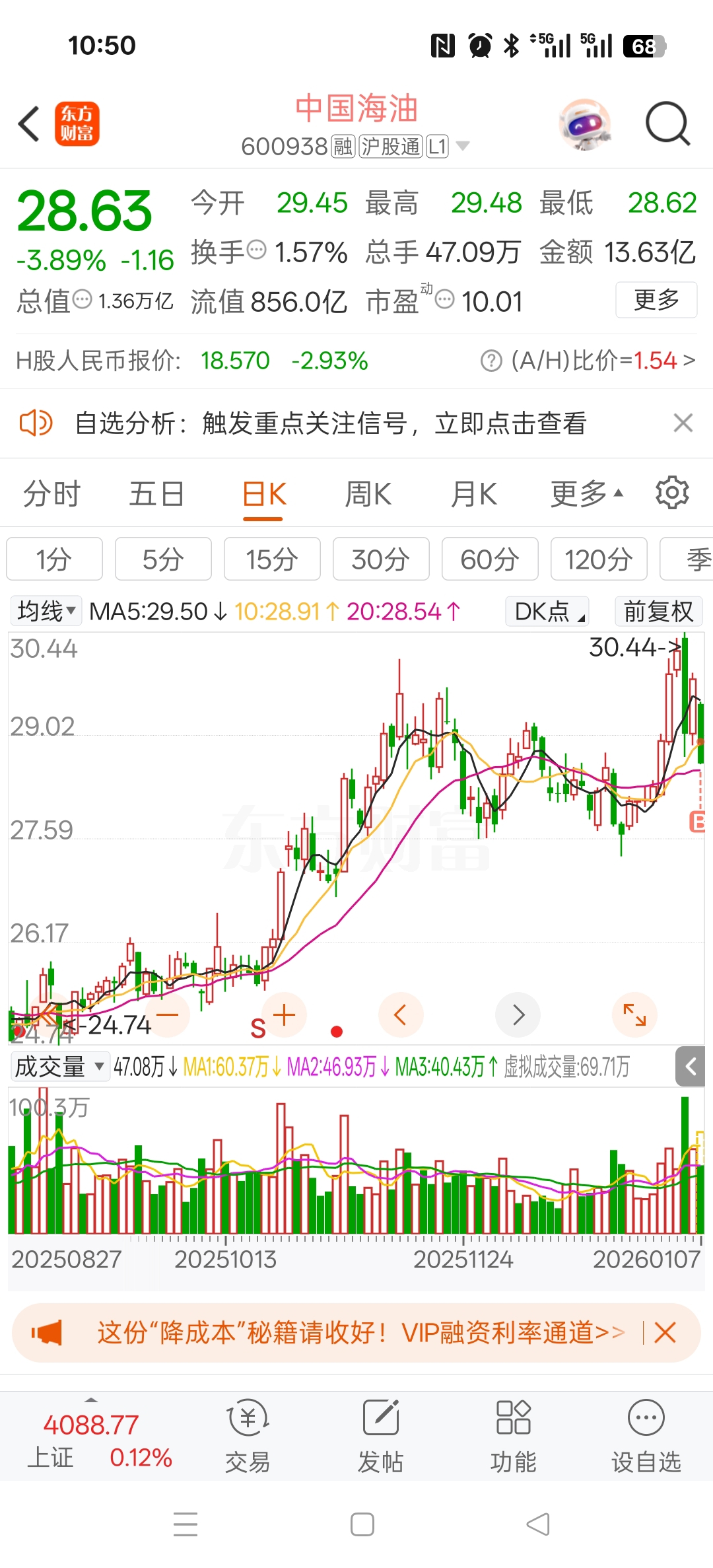 $中国海油(SH600938)$ 不好意思,是我进场了