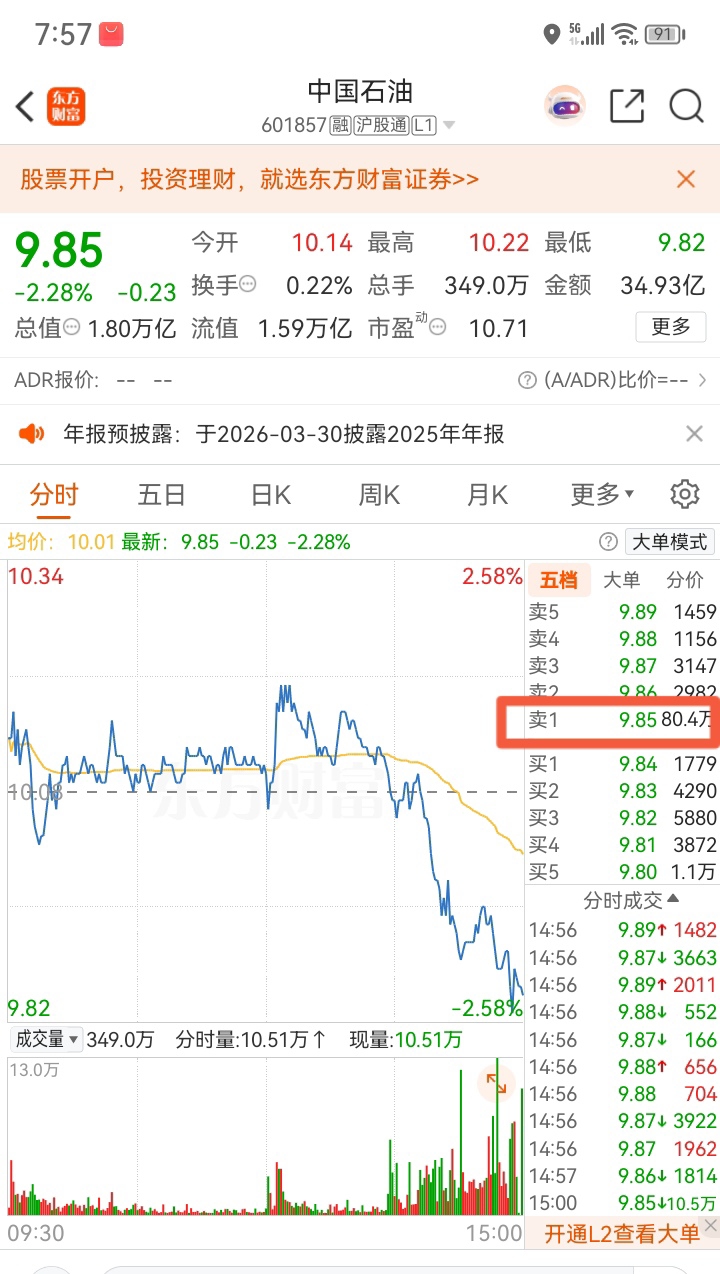 $中国海油(SH600938)$ 可怕的卖一,海油明天会这么吗