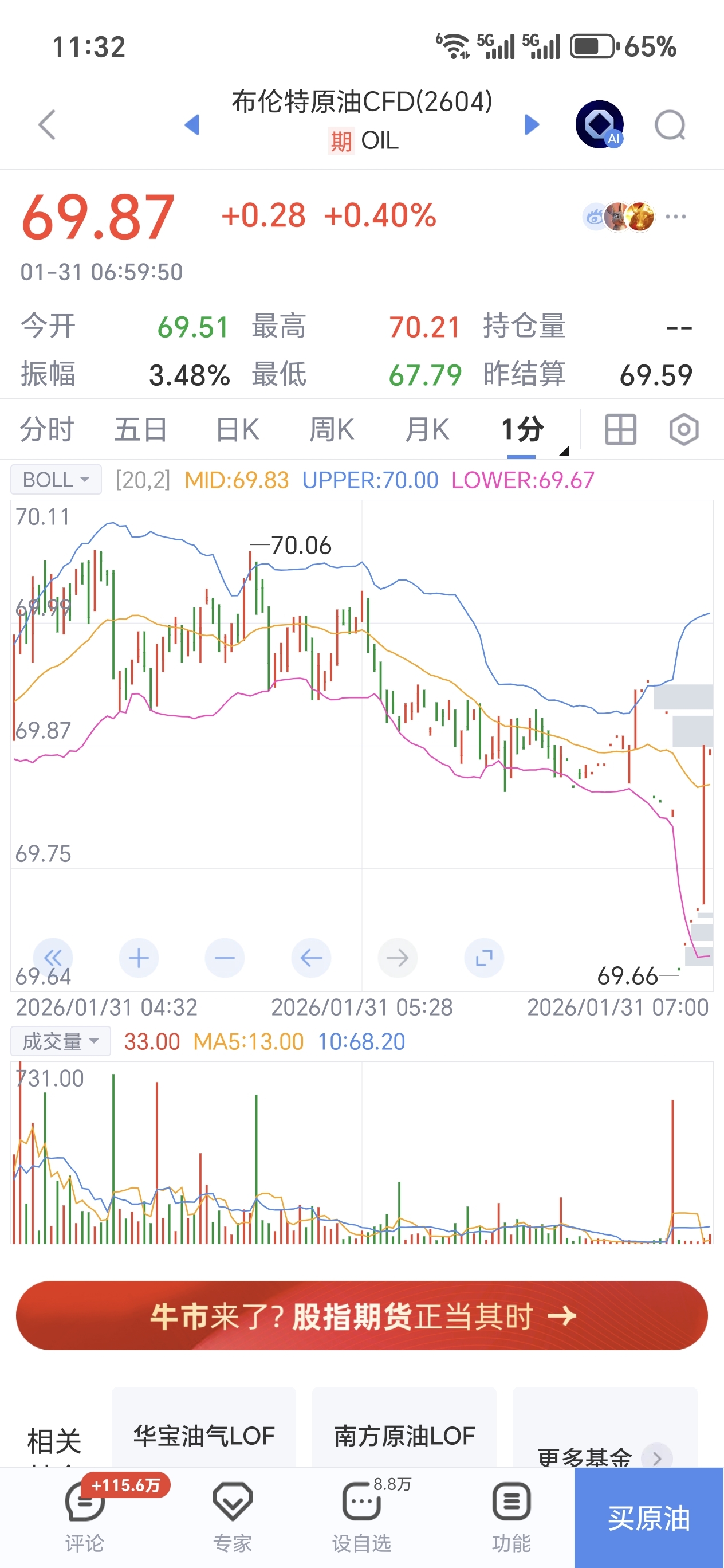 恭喜海油股民,布油盘中一度触及70多高位。伊朗叙事结束注意适当减持或做T,底仓勿