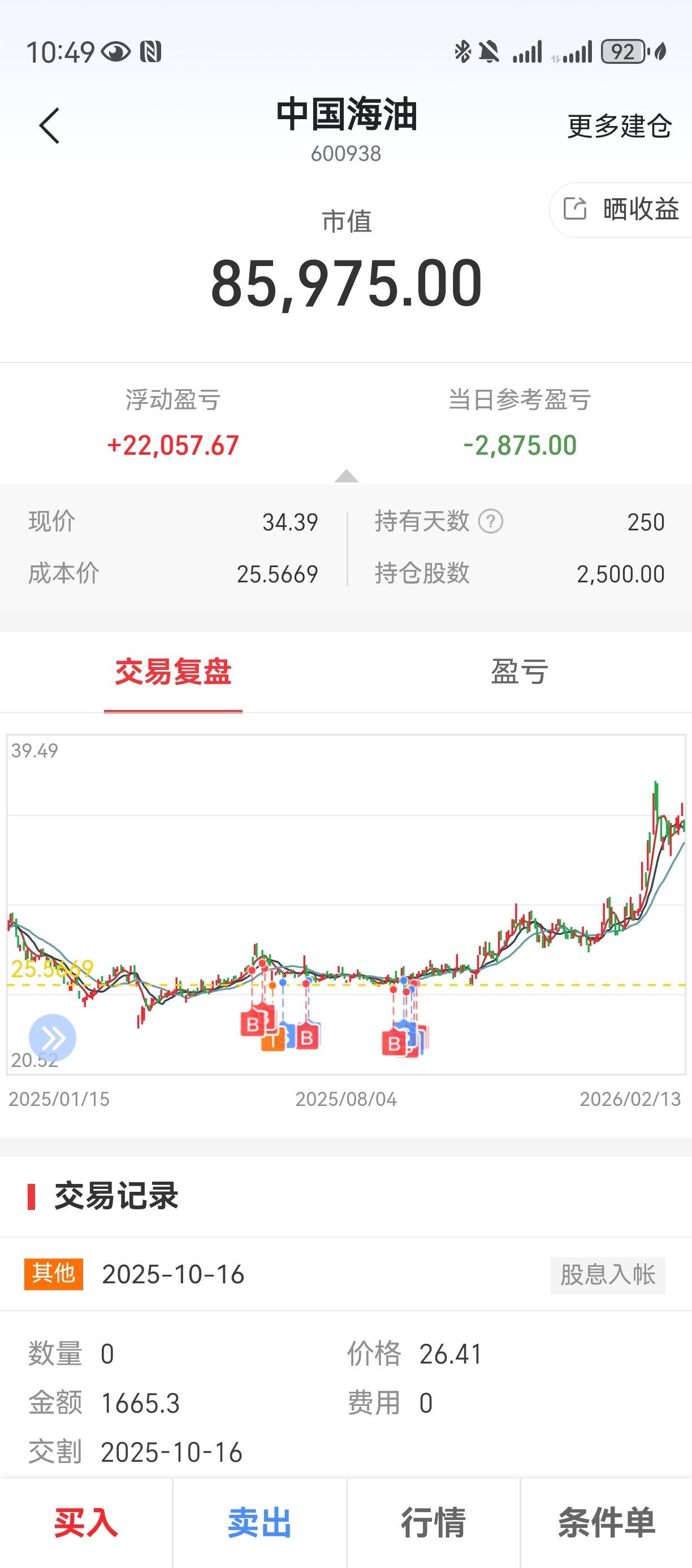 $中国海油(SH600938)$ 投资不在钱多在获利%