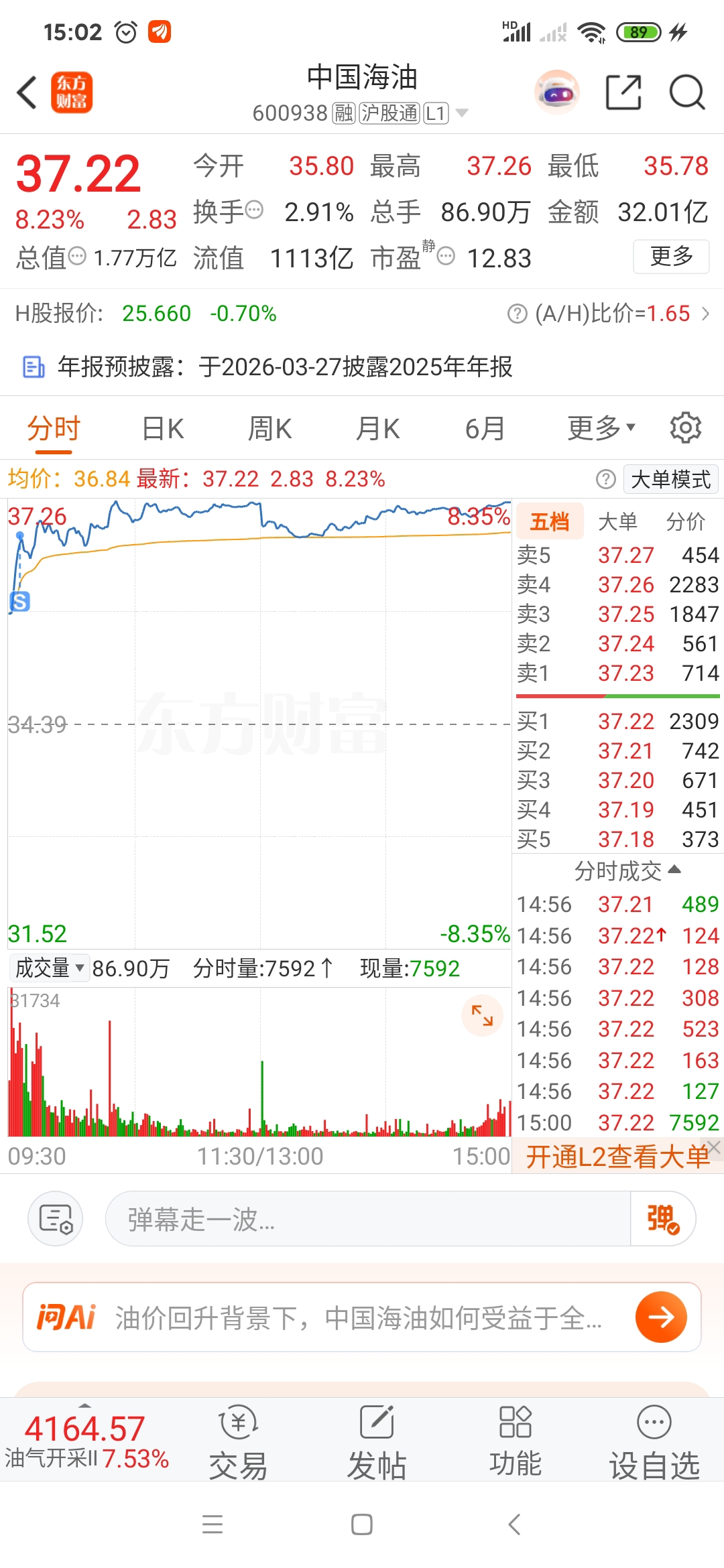 $中国海油(SH600938)$ 卖飞喽