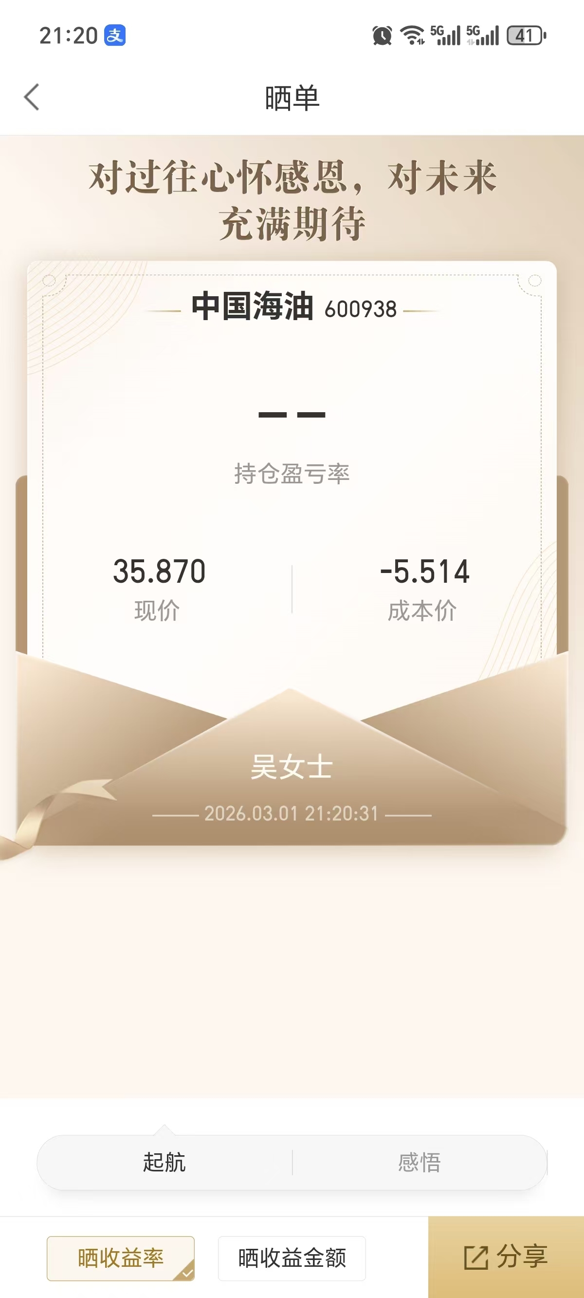 $中国海油(SH600938)$ 22年就买了持有到现在,中途做T做到成本是负数,至今赚钱最多的一只票