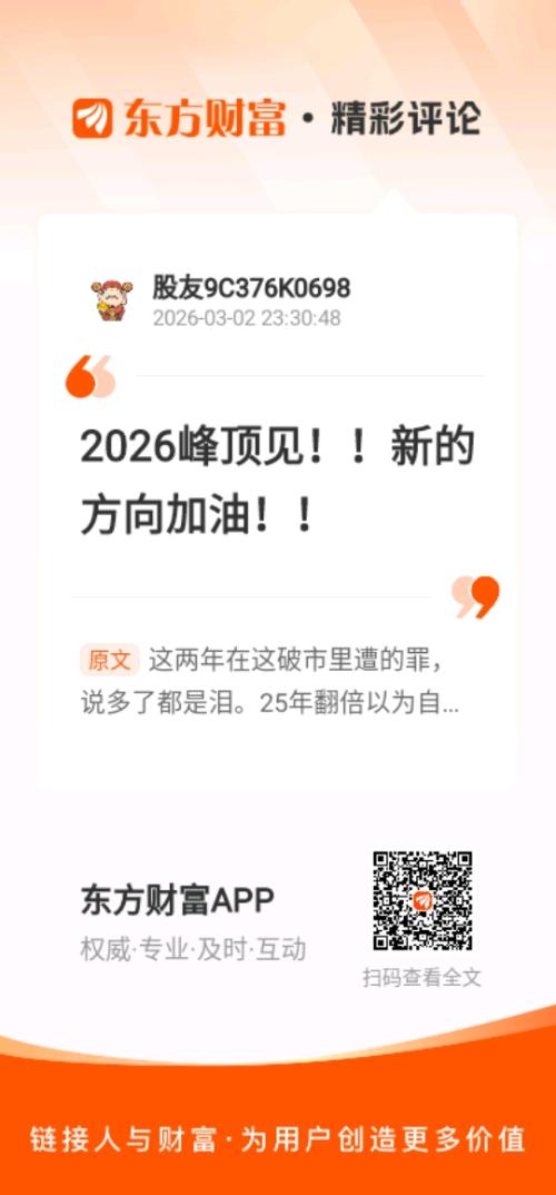 温馨提示: 1.根据《证券法》规定,禁止编造、传播虚假信息或者误导性信息,扰乱证券市场;2.用户在本社区发表的所有资料、言论等仅代表个人观点,与本网站立场无关,不对您构成任何投资建议。用户应基于自己的独立判断,自行决定证券投资并承担相应风险。《东方财富社区管理规定》