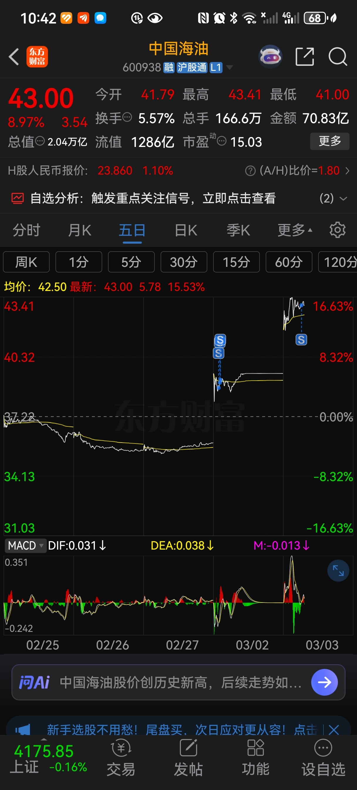 $中国海油(SH600938)$ 越涨心越慌!