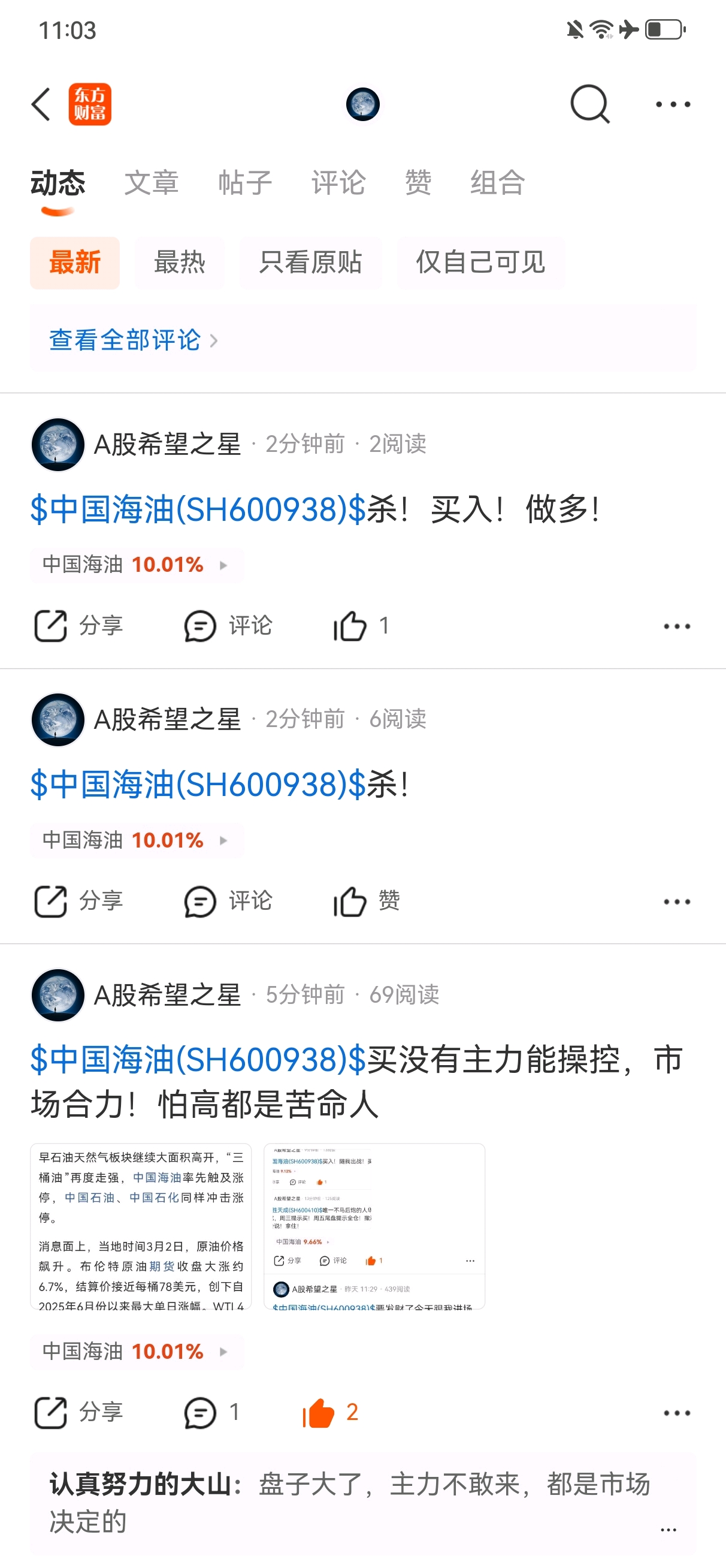 $中国海油(SH600938)$ 守住阵地我与你们同在注意看消息!注意!