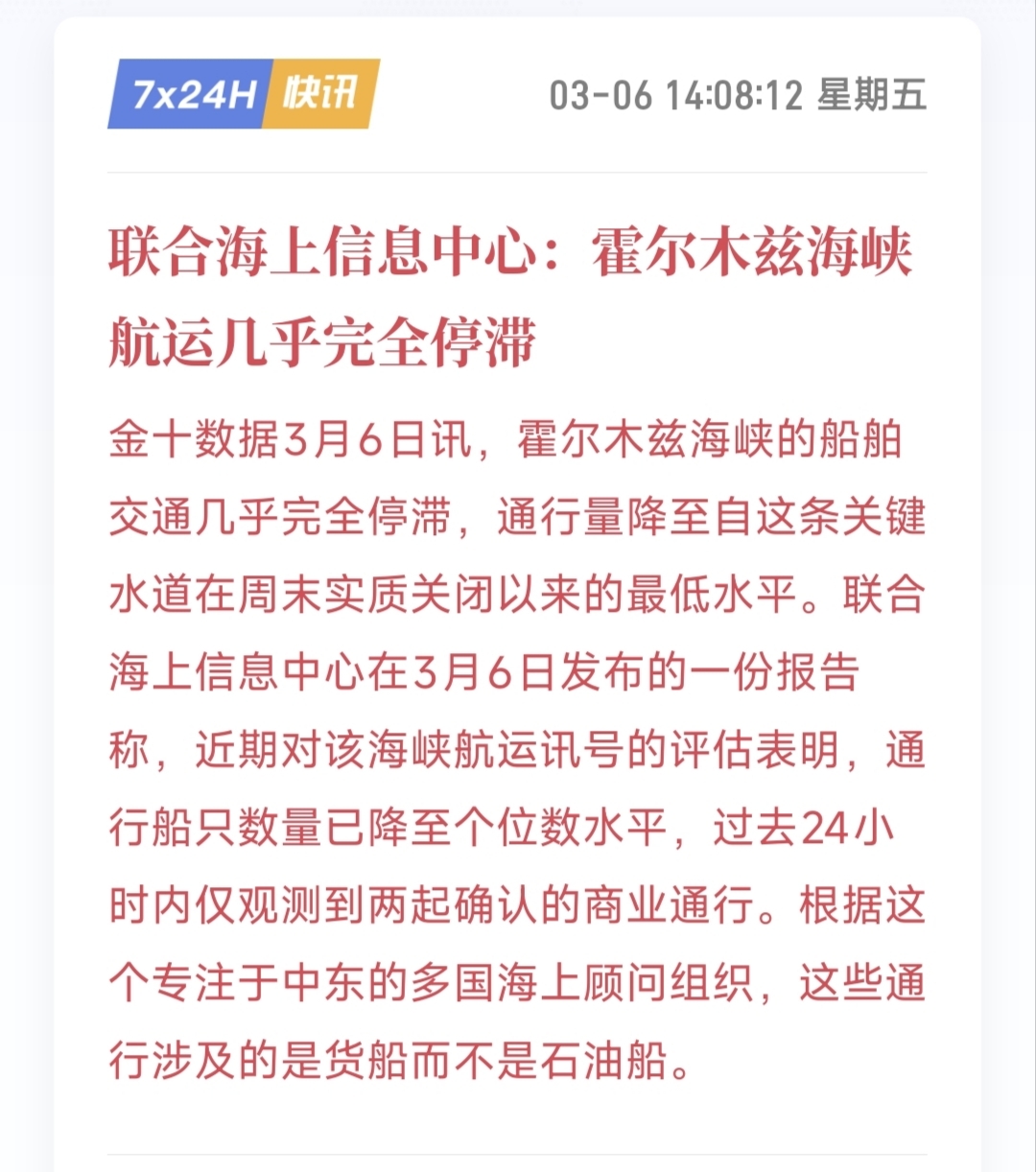 $中国海油(SH600938)$ 霍尔木兹海峡几乎完全停滞!加油啊