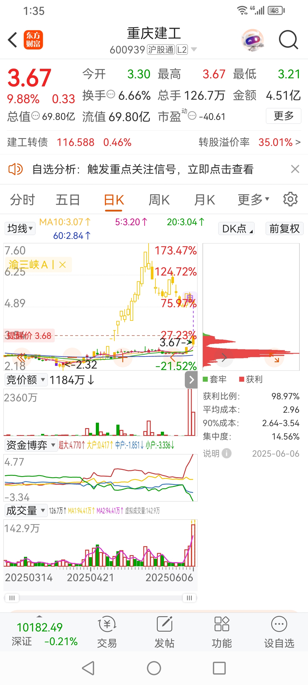 $重庆建工(SH600939)$ 军哥,买进重庆建工,首板#炒股日记#