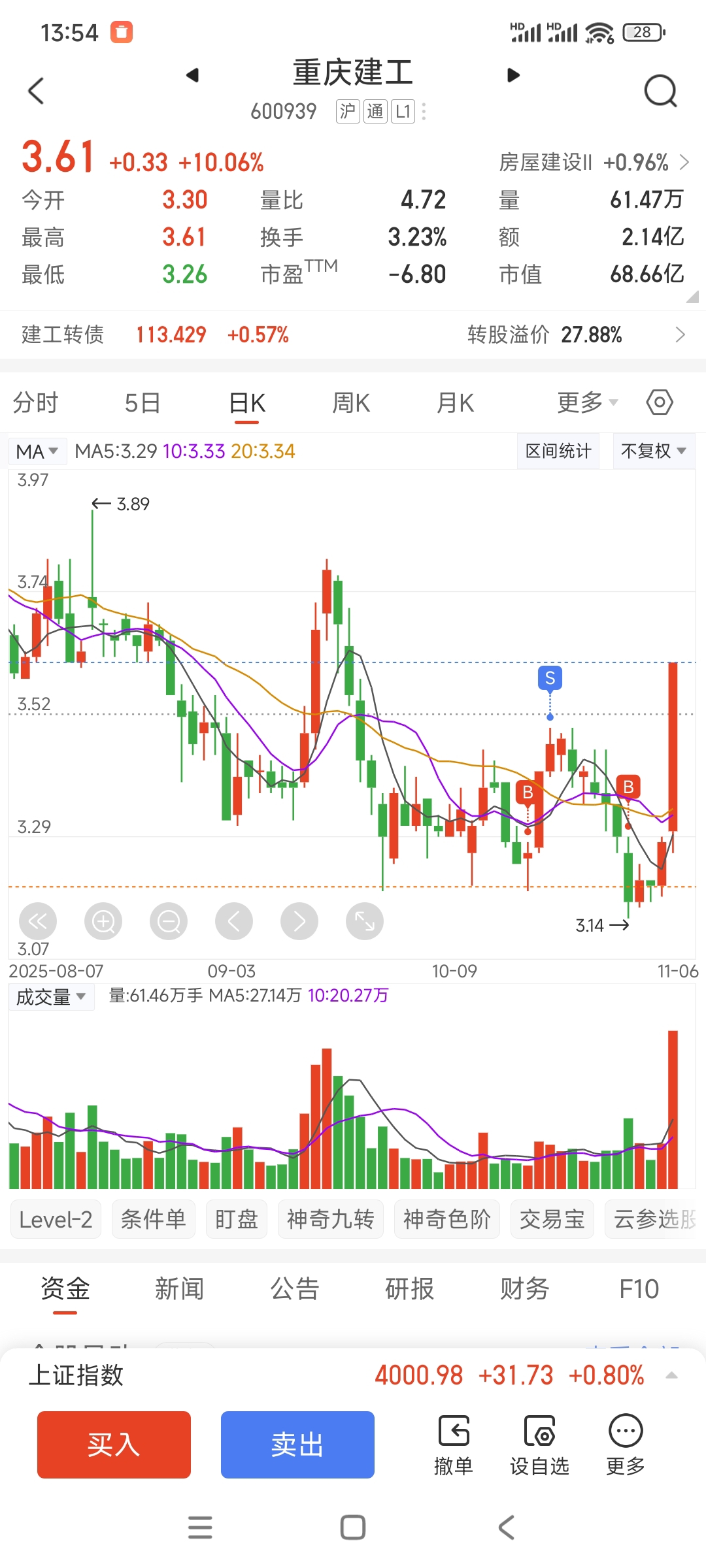 $重庆建工(SH600939)$ 我还没跑,犹豫中
