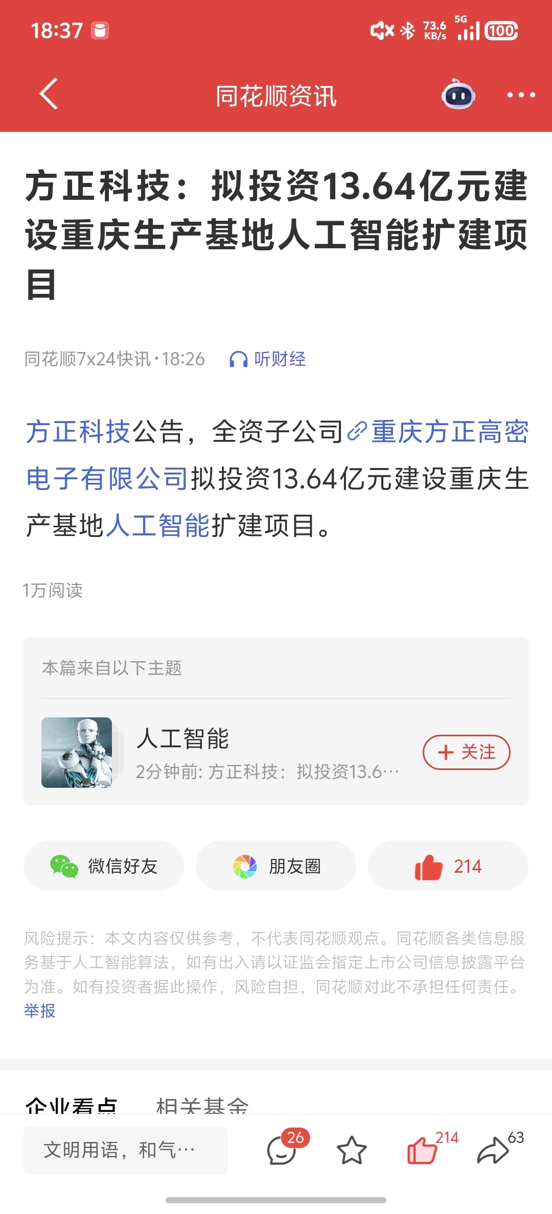 温馨提示: 1.根据《证券法》规定,禁止编造、传播虚假信息或者误导性信息,扰乱证券市场;2.用户在本社区发表的所有资料、言论等仅代表个人观点,与本网站立场无关,不对您构成任何投资建议。用户应基于自己的独立判断,自行决定证券投资并承担相应风险。《东方财富社区管理规定》