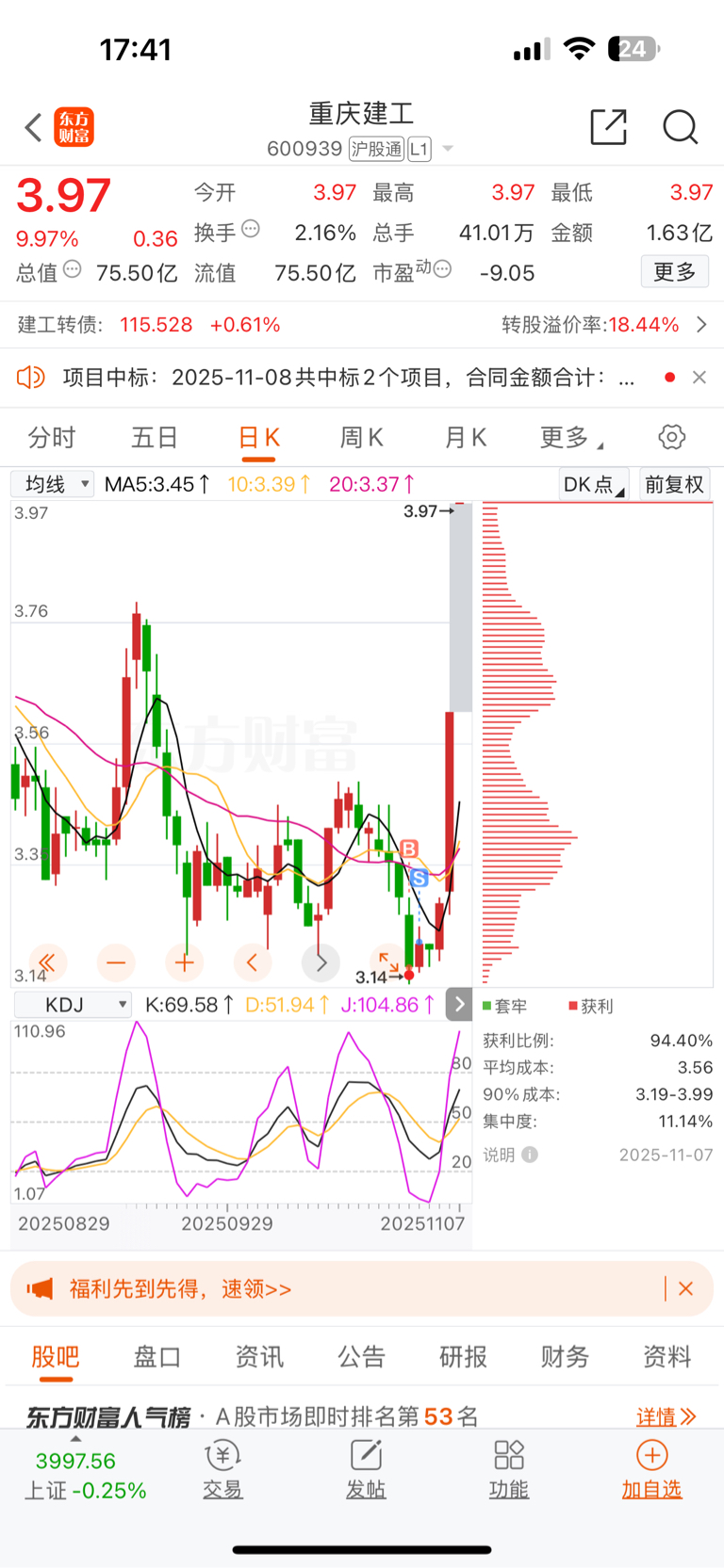 $重庆建工(SH600939)$ 卖在了起飞前,