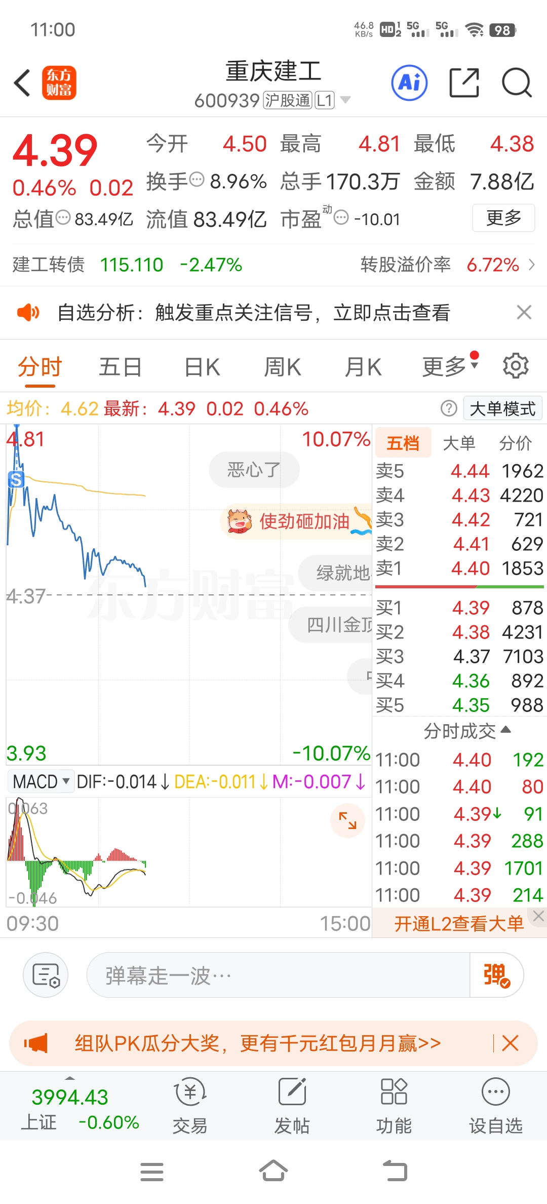 $重庆建工(SH600939)$ 4.81成功逃跑,这周估计没啥好玩的了