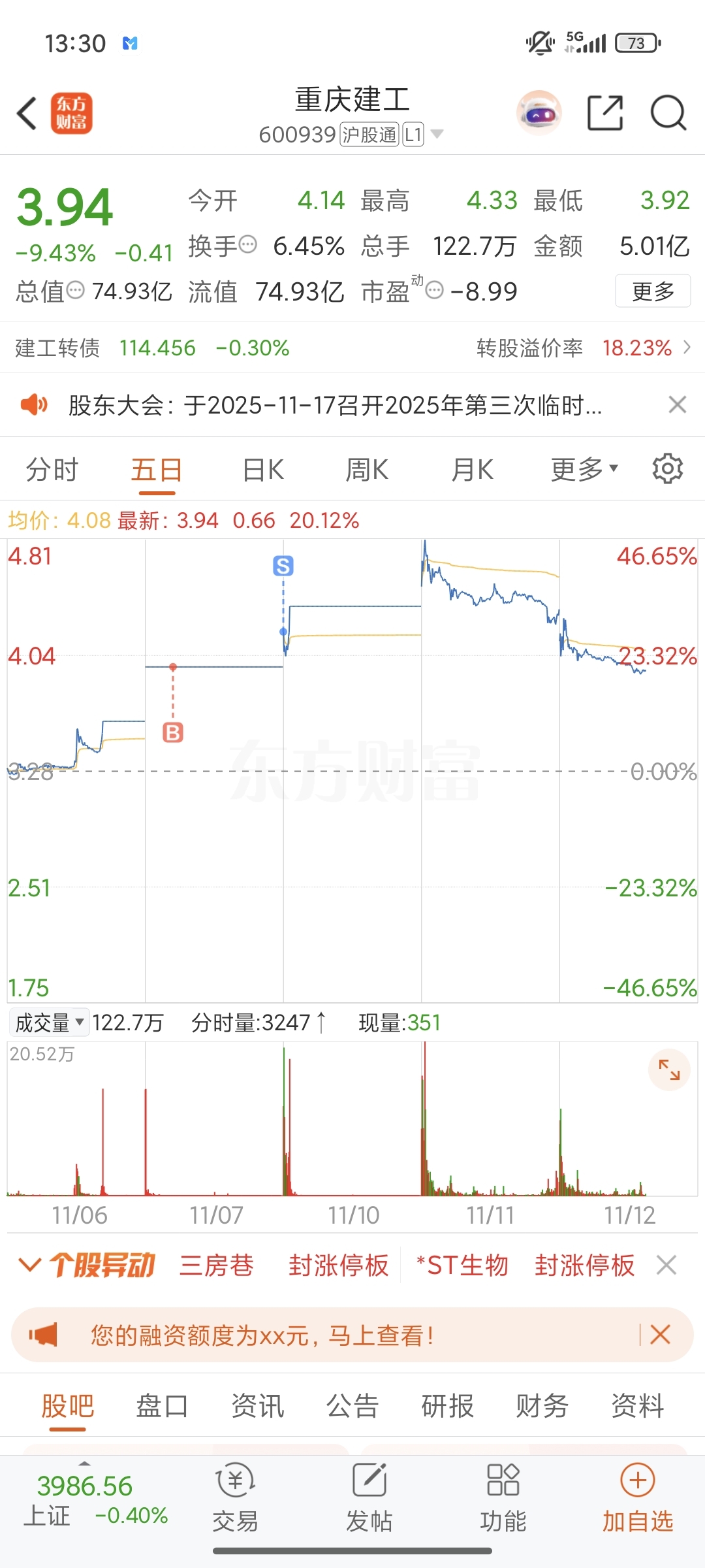$重庆建工(SH600939)$ 可惜没卖到最高