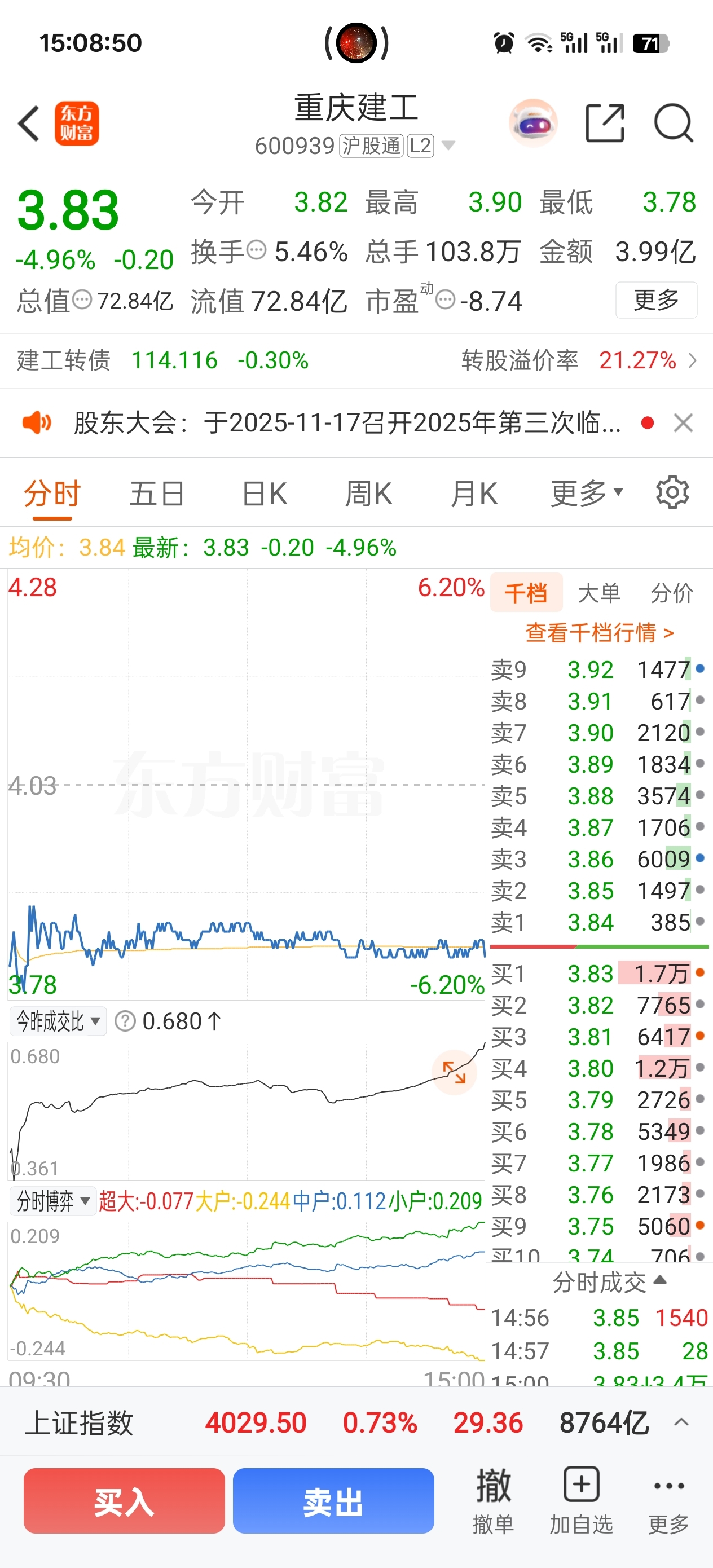 $重庆建工(SH600939)$ 就这样了,昨天买的人全套上,今天大盘还这么猛。。。