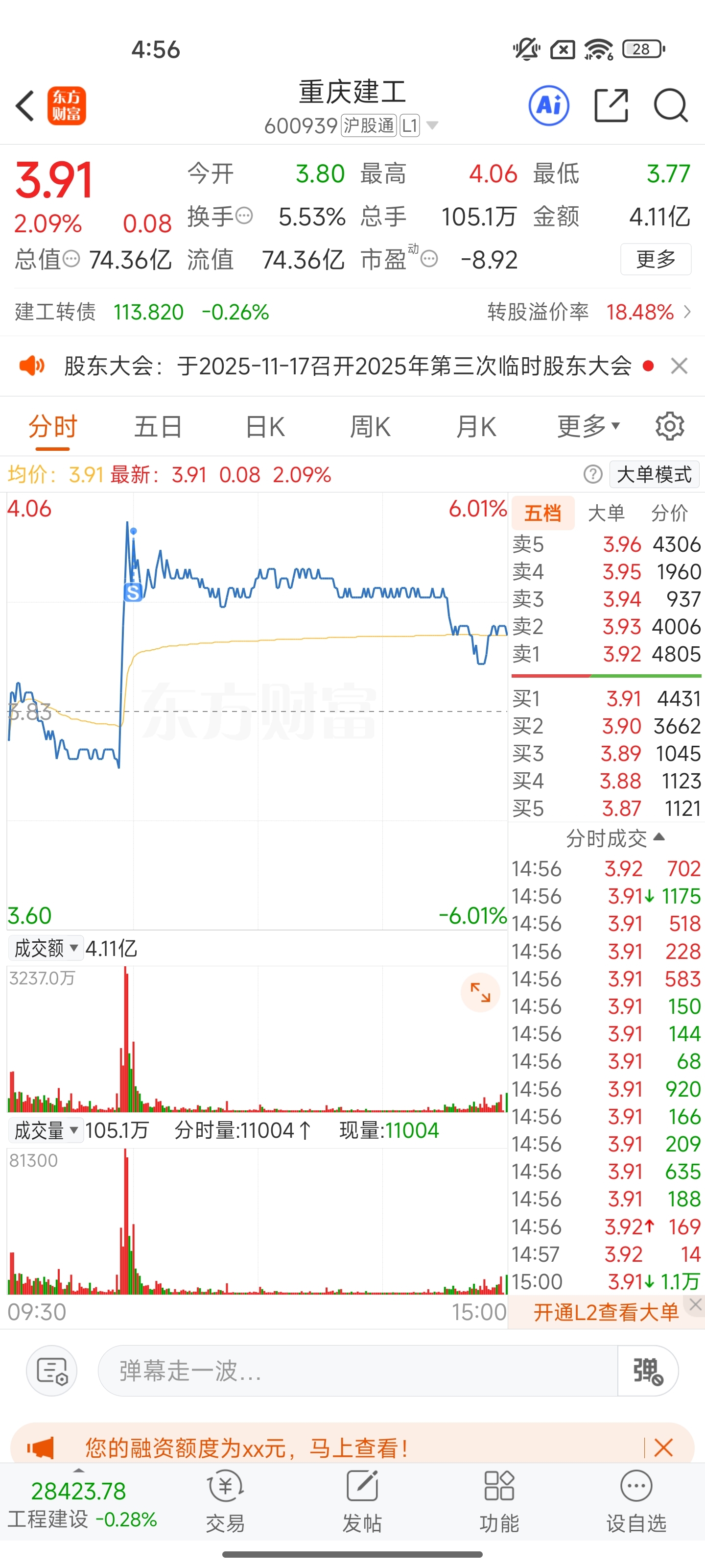 $重庆建工(SH600939)$ 第二次冲不上去我就知道你今天没有了。