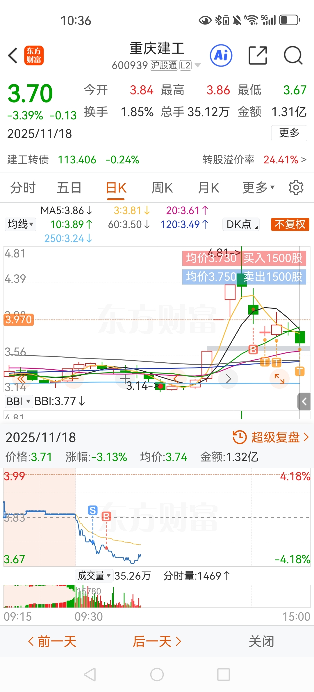 $重庆建工(SH600939)$ T早了,成本刚好来到第二个一字涨停的位置。今天早上在3.72挂1.2万手托单的真是坏,半天砸不下去,本来想挂五日周线3.66左右接的。
