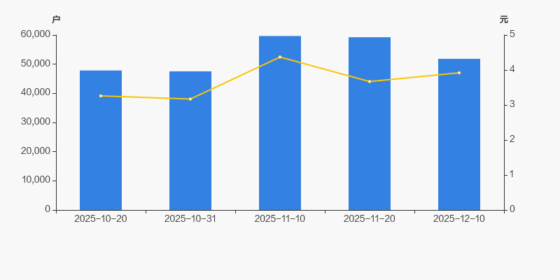 2025年10月20日至今,公司股东户数有所增长,区间涨幅为8.33%。2025年10月20日至2025年12月10日区间股价上涨20.25%。