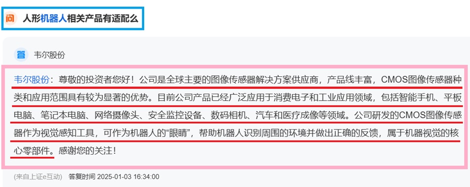 韦尔股份相关领域成熟芯片市场全球第三跃居第二争第一,国内所有高端手机甚至美国苹果手机都在争着用韦尔的镜头传感器芯片,韦尔的成熟芯片延伸到AI眼镜、人形机器人、自动驾驶等领域,特别是在电动汽车市场占据很份额且占比越来越高。