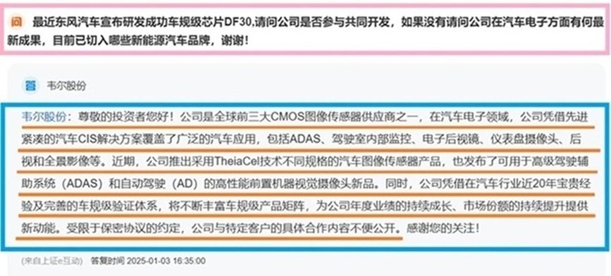 韦尔股份在车载CIS是国产中唯一可以去替代安森美,索尼,三星的公司。