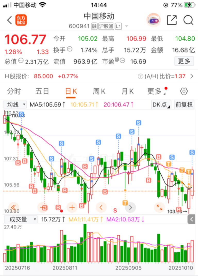 $中国移动(SH600941)$ 重仓打底,小仓做T,知道我这几个月怎么熬的吗?
