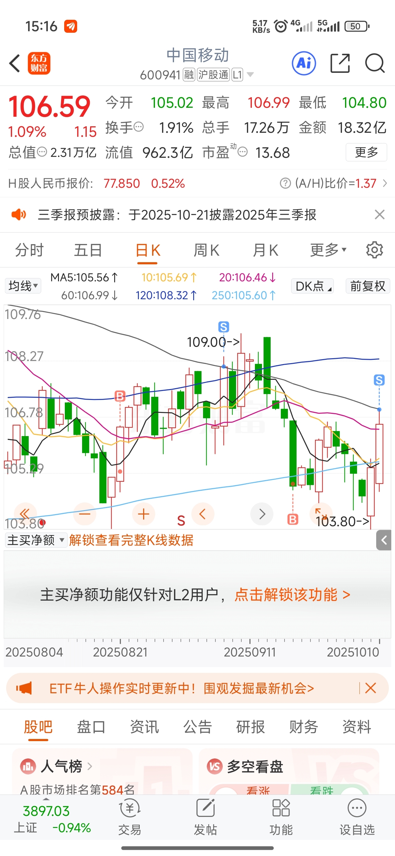 $中国移动(SH600941)$ 一次赚个几百块,轻轻松松。